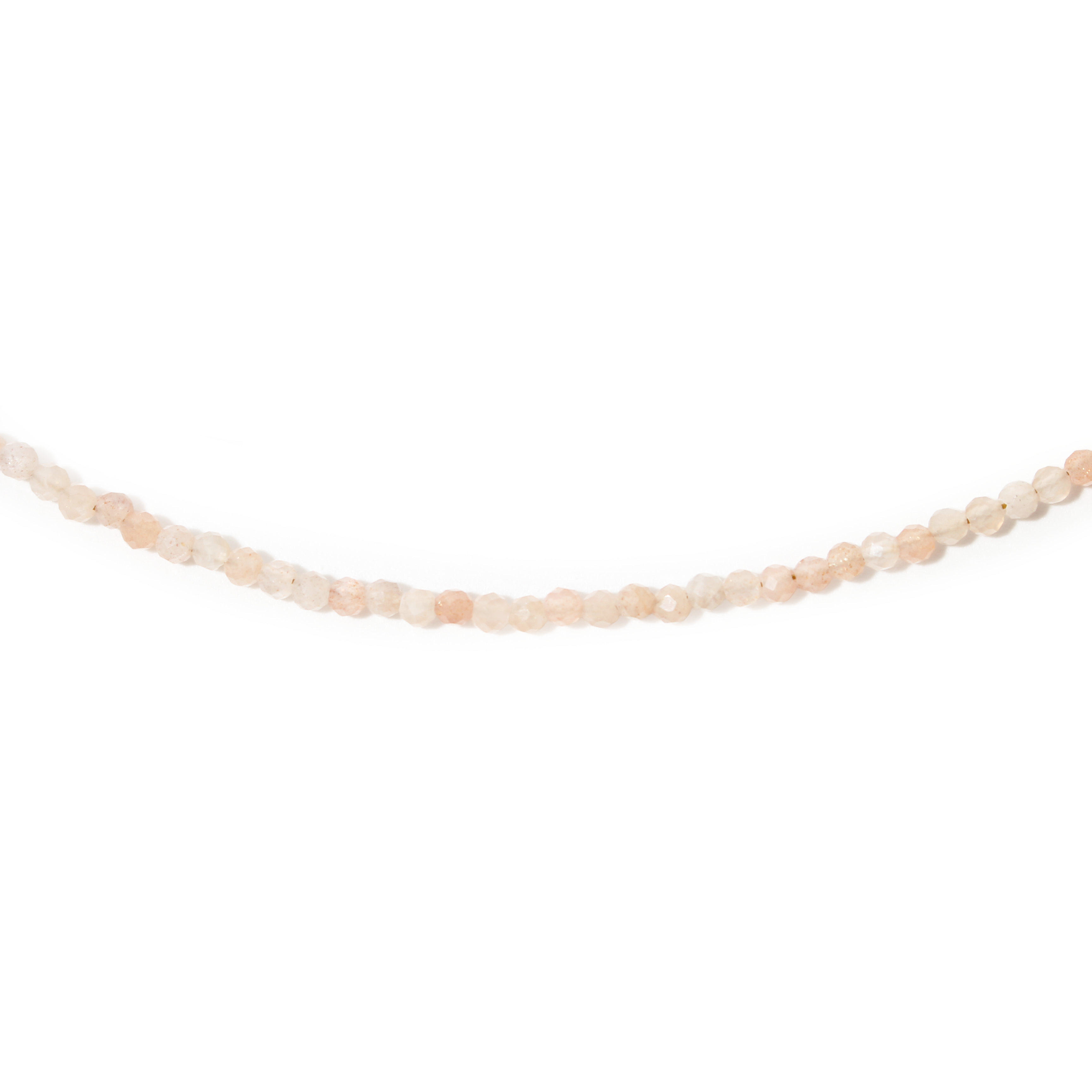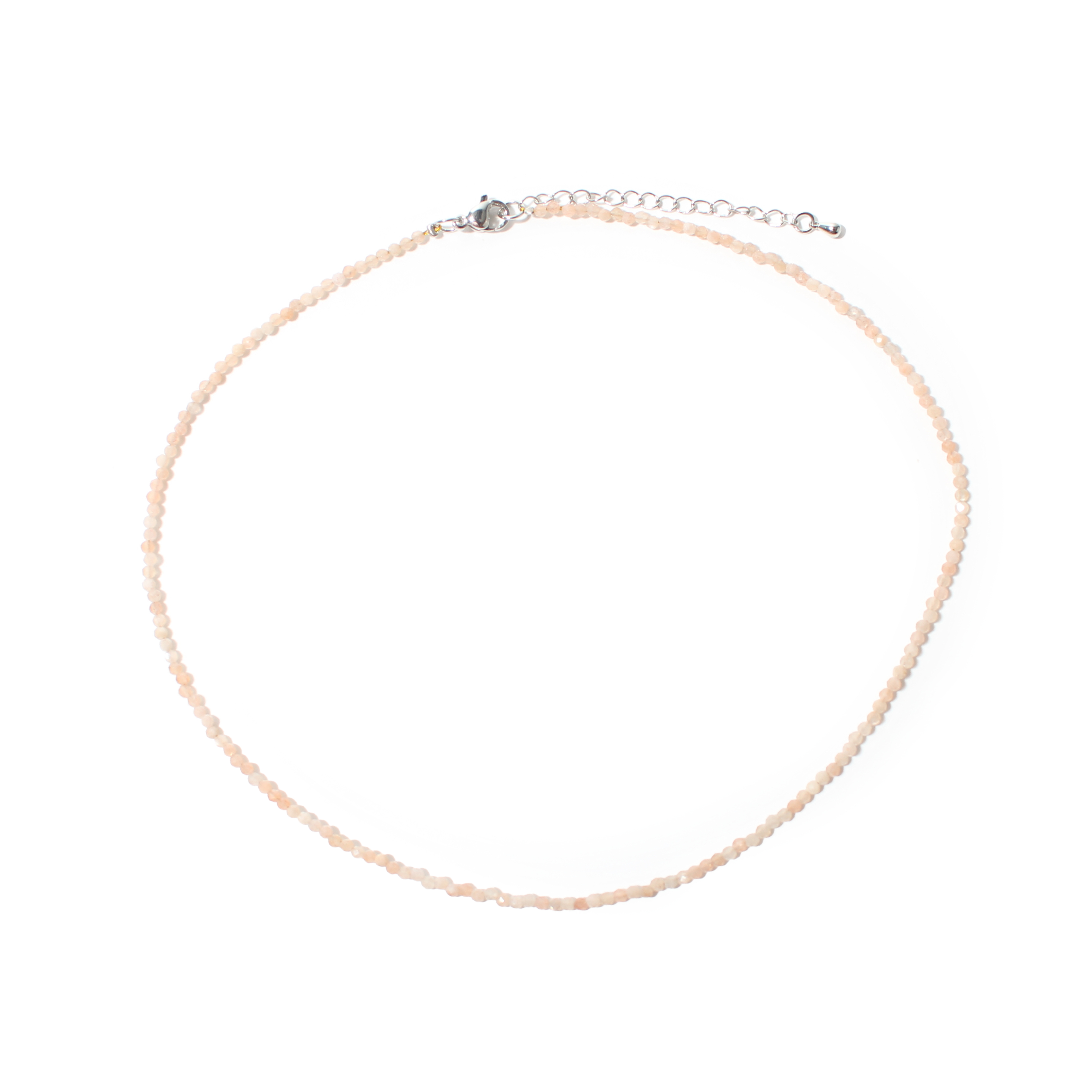 This Sunstone Bead Necklace features dainty 2–3mm beads in warm orange and golden hues, adding a radiant, uplifting sparkle perfect for layering or everyday wear.