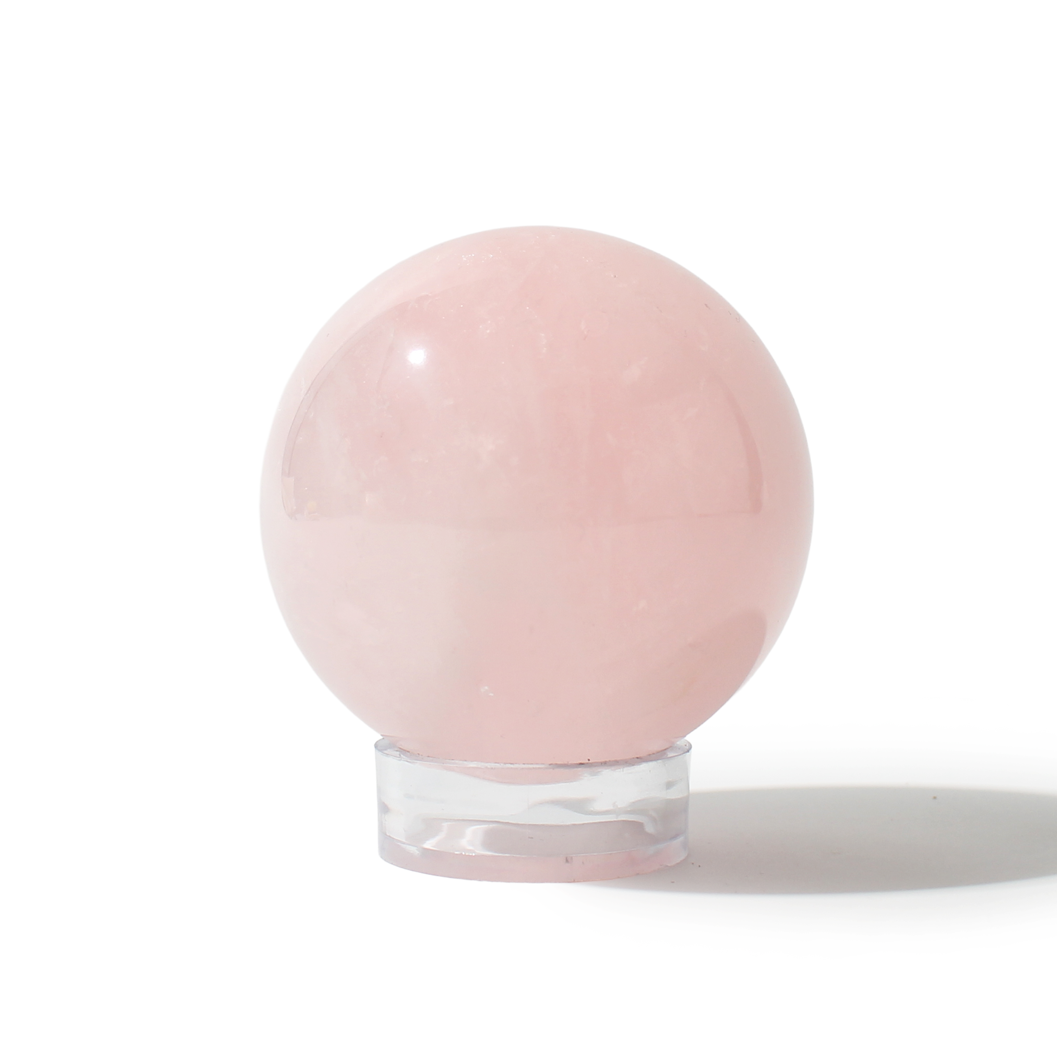 Rose Quartz Sphere Unique #75 - 3 1/8" across and features soft pink tones with a smooth, polished finish. Radiating gentle, loving energy in all directions, it’s ideal for emotional healing and heart-centered spaces.