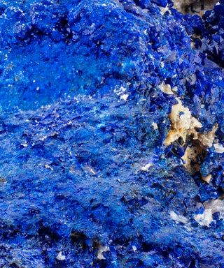 The saturated color ranges from bright to deep blue into shades of indigo, and may contain streaks of light blue. It has been ground into pigment for paint and used as a dye for fabric for thousands of years.