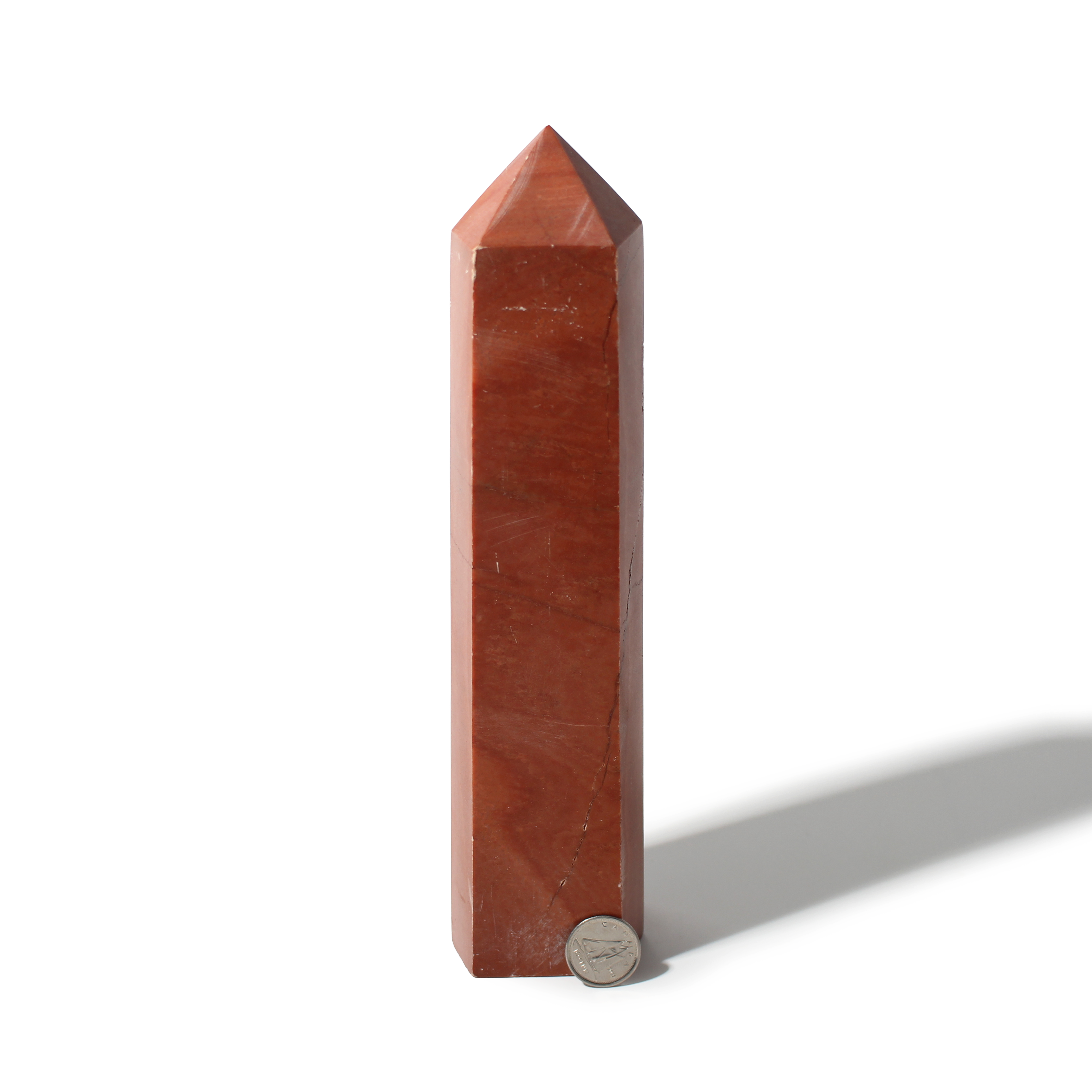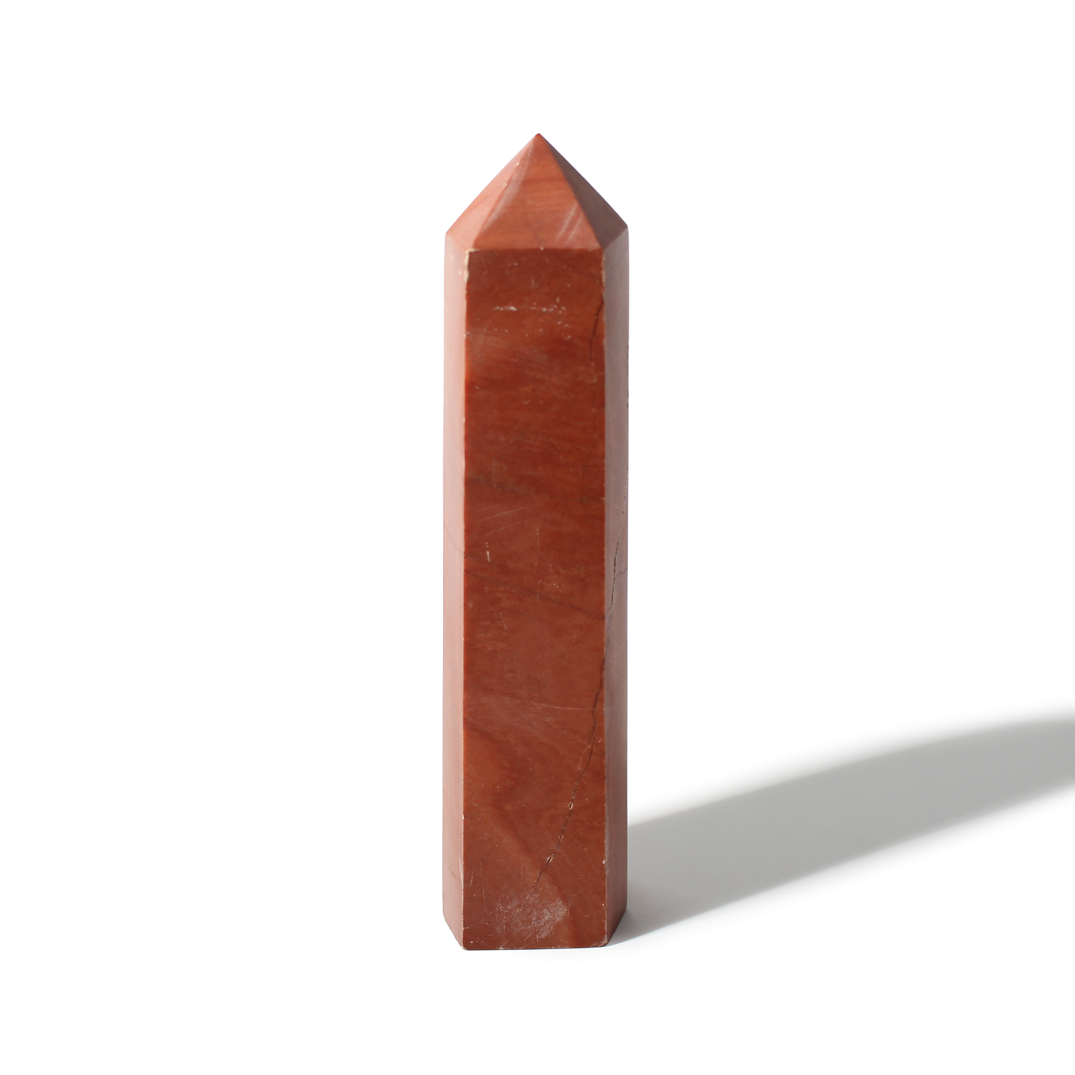 This 8" Red Jasper Generator showcases bold brick-red tones with natural patterns and a solid, polished point. Grounding and powerful, it brings strength and stability to any space.