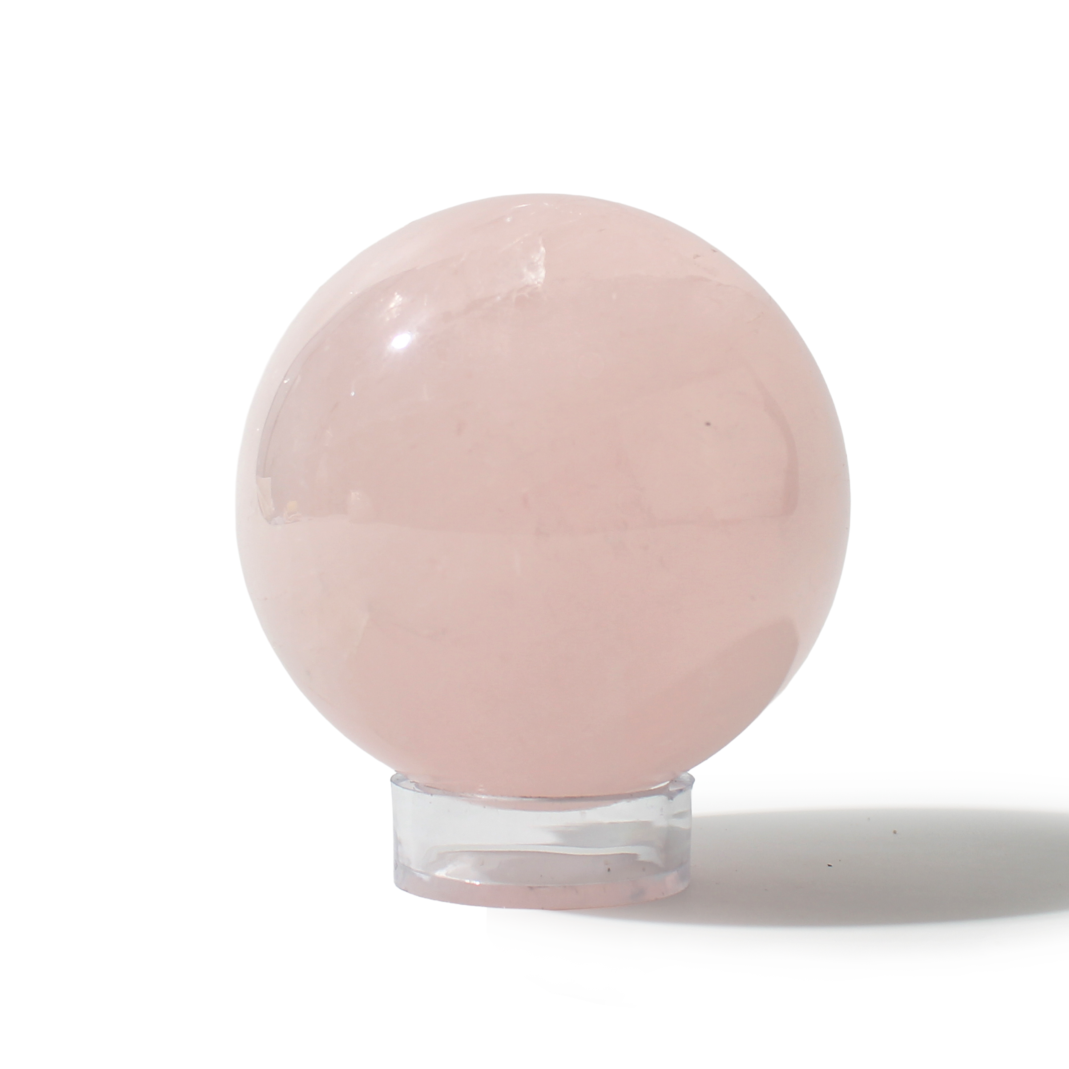 Rose Quartz Sphere Unique #126 - 3 5/8" across and features soft pink tones with a smooth, polished finish. Radiating gentle, loving energy in all directions, it’s ideal for emotional healing and heart-centered spaces.