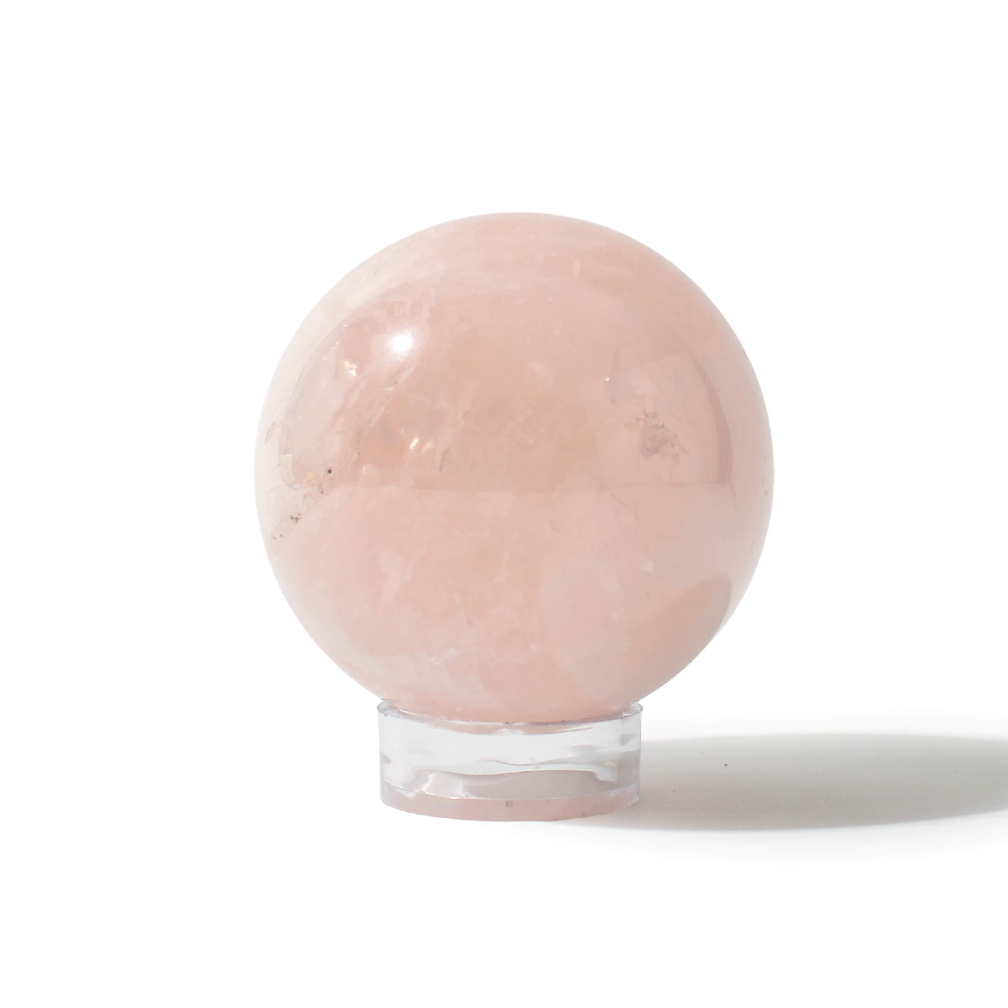 Rose Quartz Sphere Unique #93 - 3 1/2" across and features soft pink tones with a smooth, polished finish. Radiating gentle, loving energy in all directions, it’s ideal for emotional healing and heart-centered spaces.