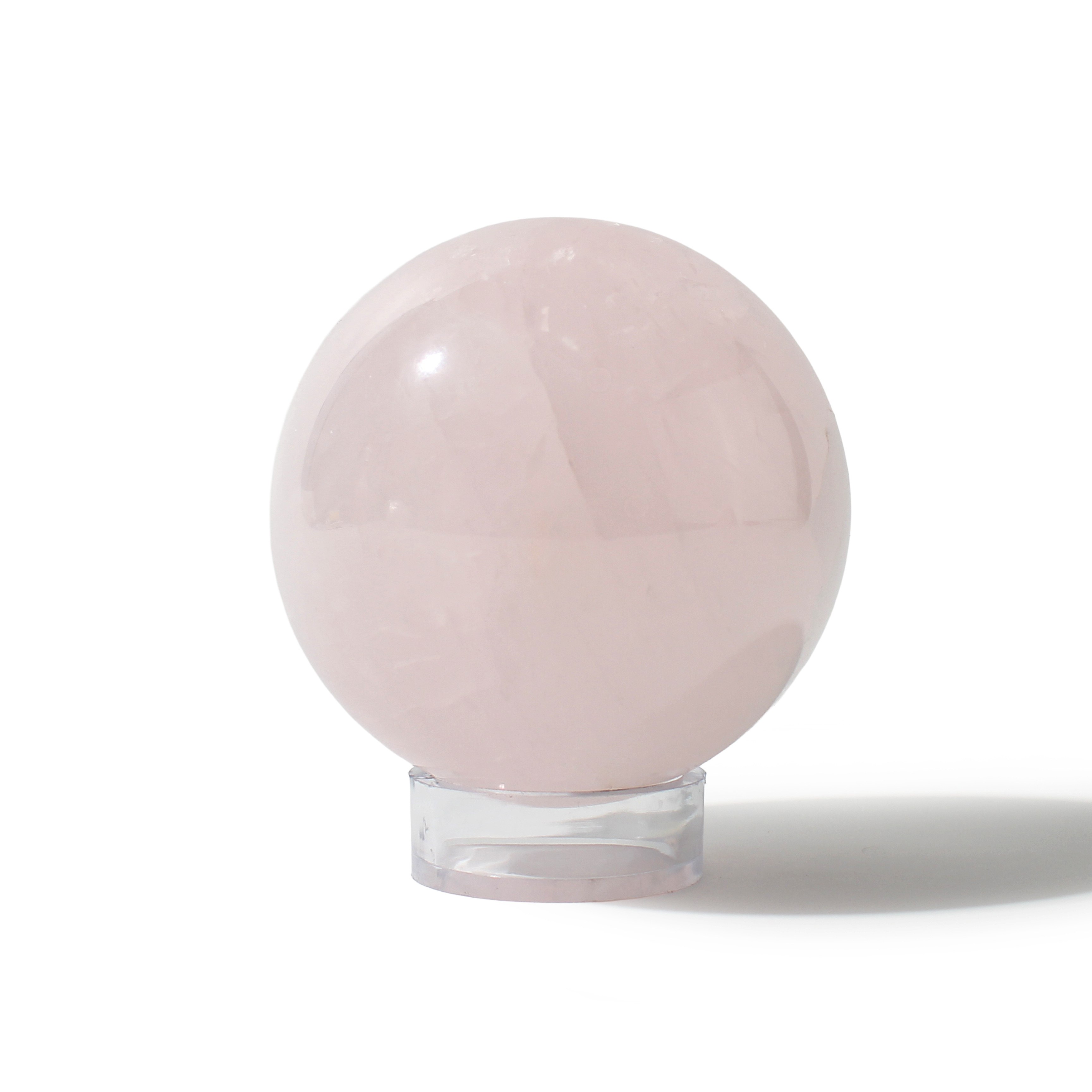 Rose Quartz Sphere Unique #130 - 3 5/8" across and features soft pink tones with a smooth, polished finish. Radiating gentle, loving energy in all directions, it’s ideal for emotional healing and heart-centered spaces.