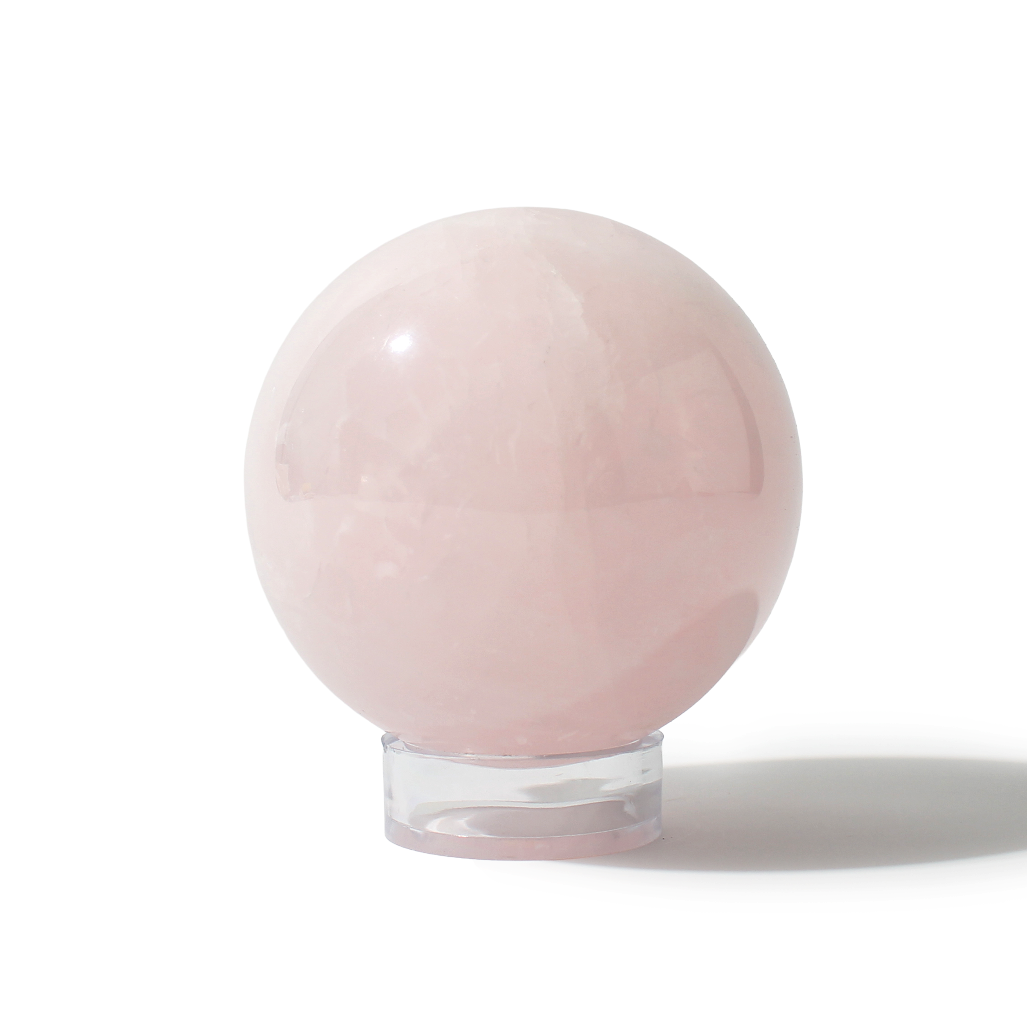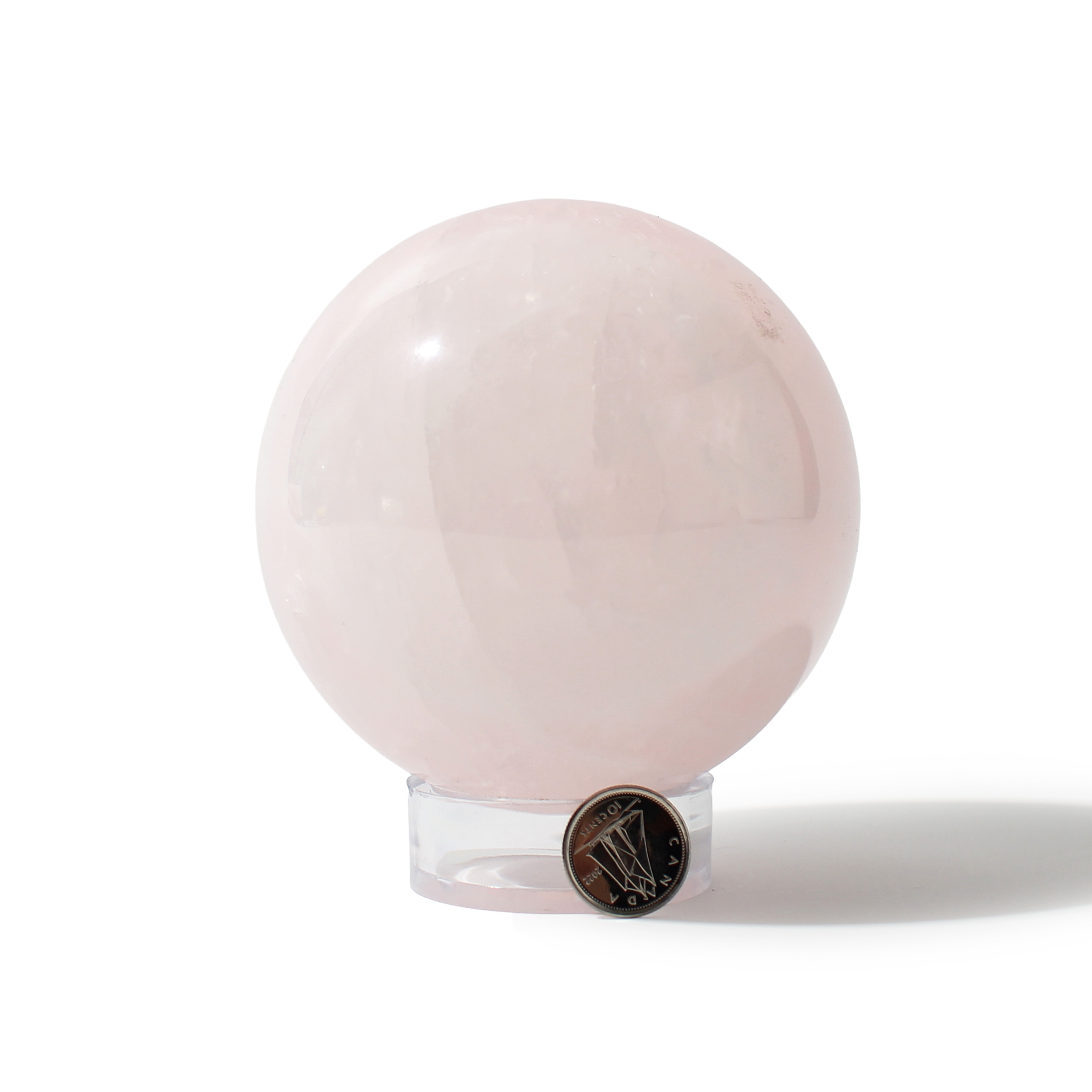 Rose Quartz Sphere Unique #131 - 3 5/8" across and features soft pink tones with a smooth, polished finish. Radiating gentle, loving energy in all directions, it’s ideal for emotional healing and heart-centered spaces.