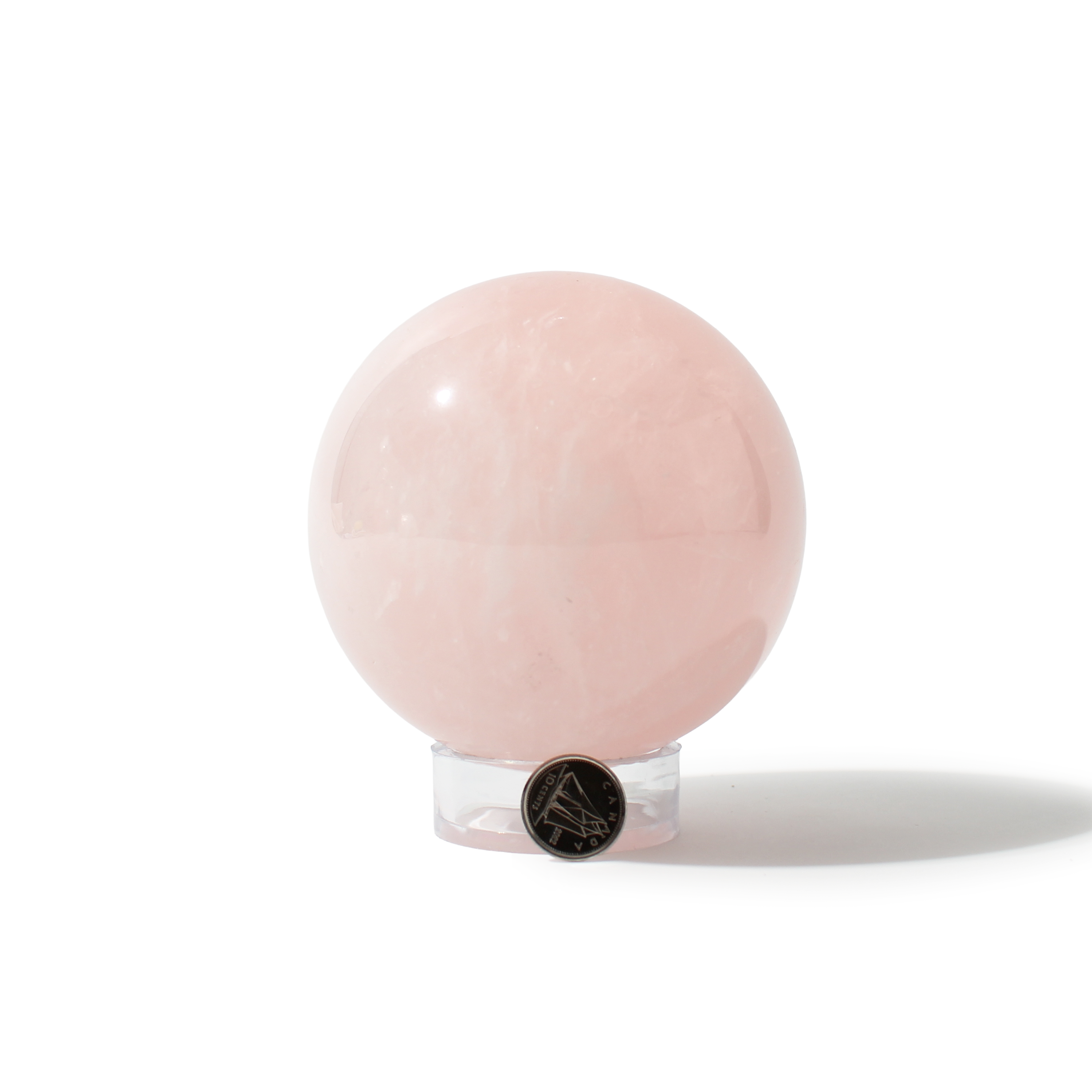 Rose Quartz Sphere Unique #64 - 3 1/2" across and features soft pink tones with a smooth, polished finish. Radiating gentle, loving energy in all directions, it’s ideal for emotional healing and heart-centered spaces.