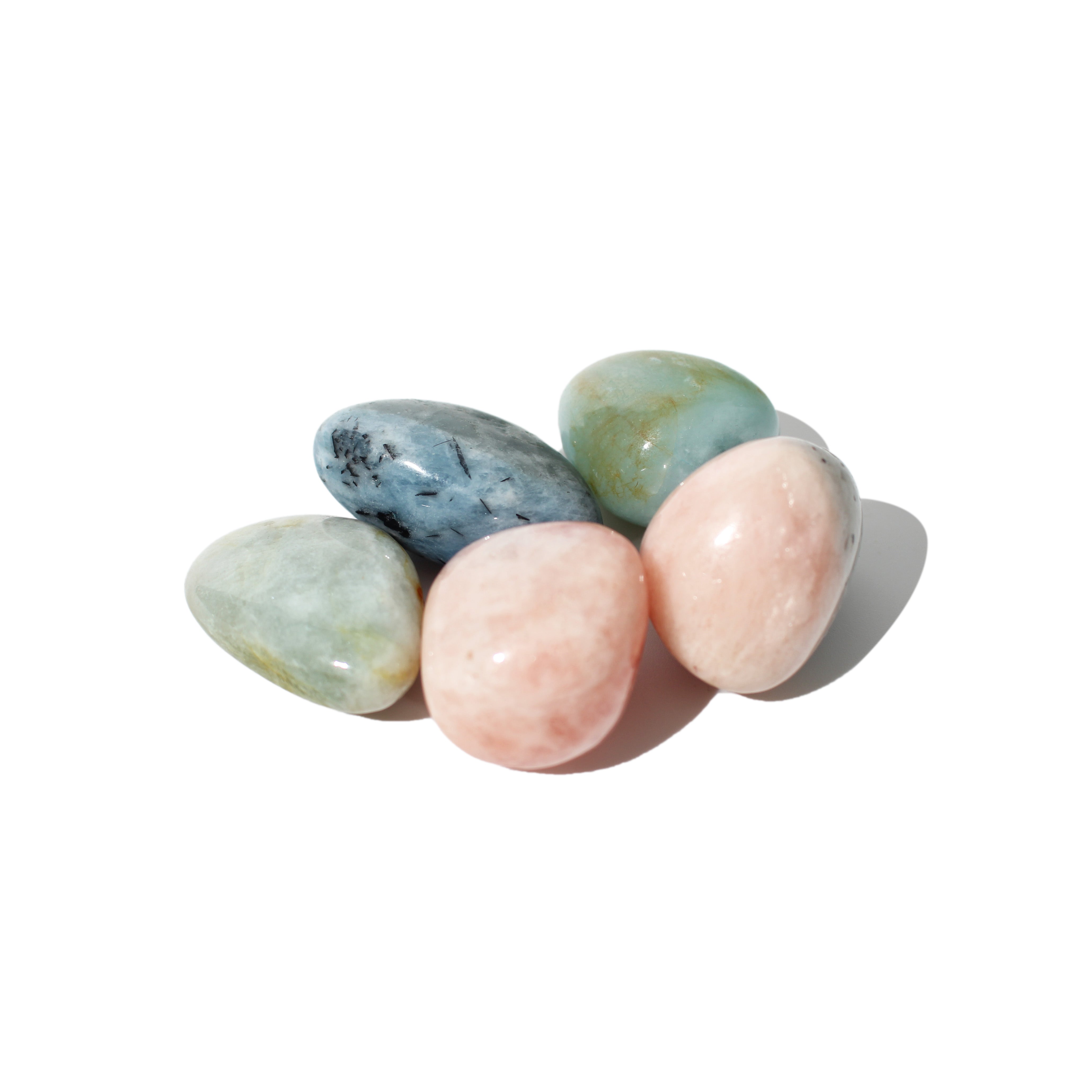 These Morganite and Aquamarine Tumbled Stones blend soft pinks with gentle blues, polished smooth for a delicate, serene feel. Each piece radiates heart-healing calm and watery grace.