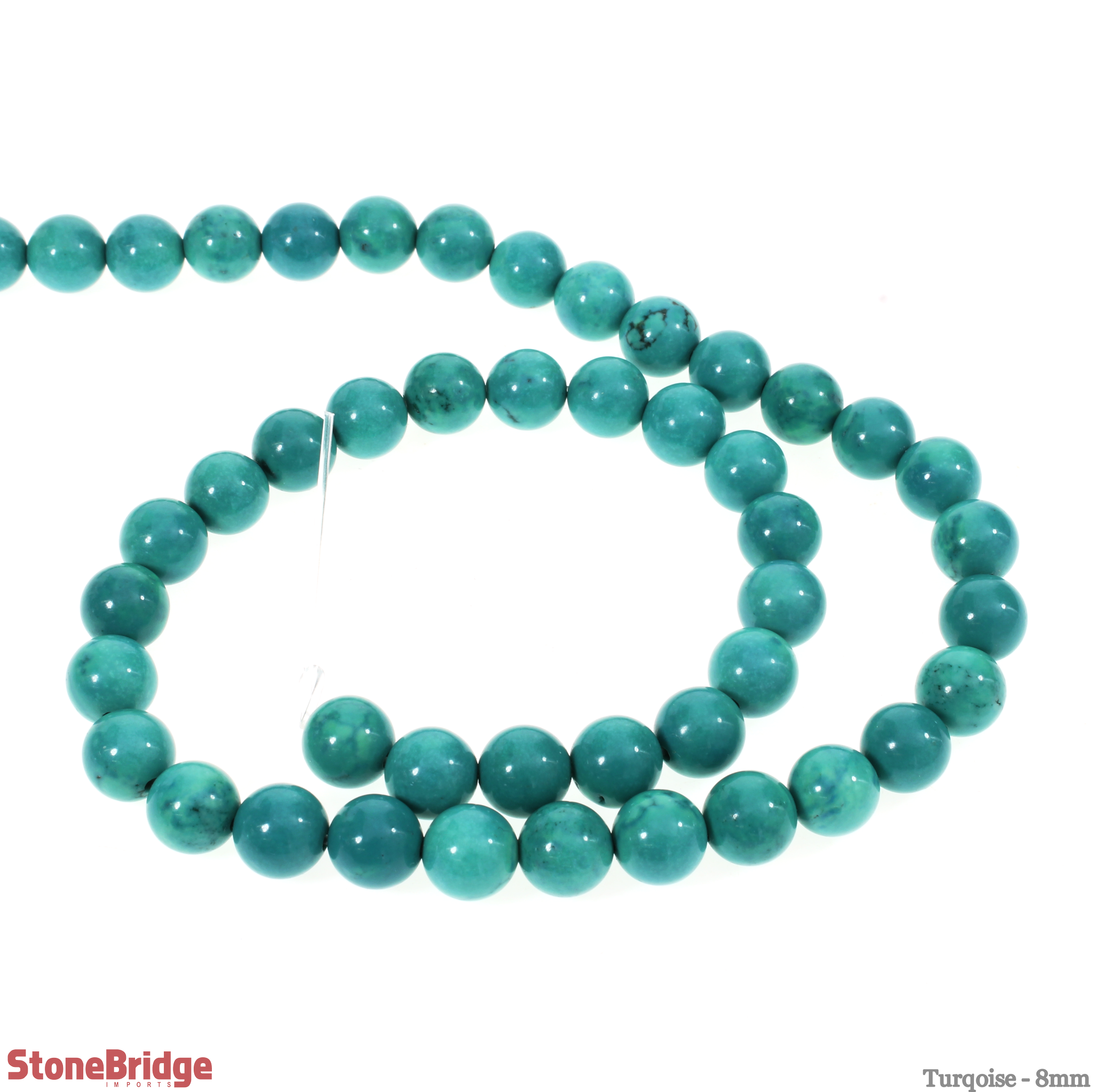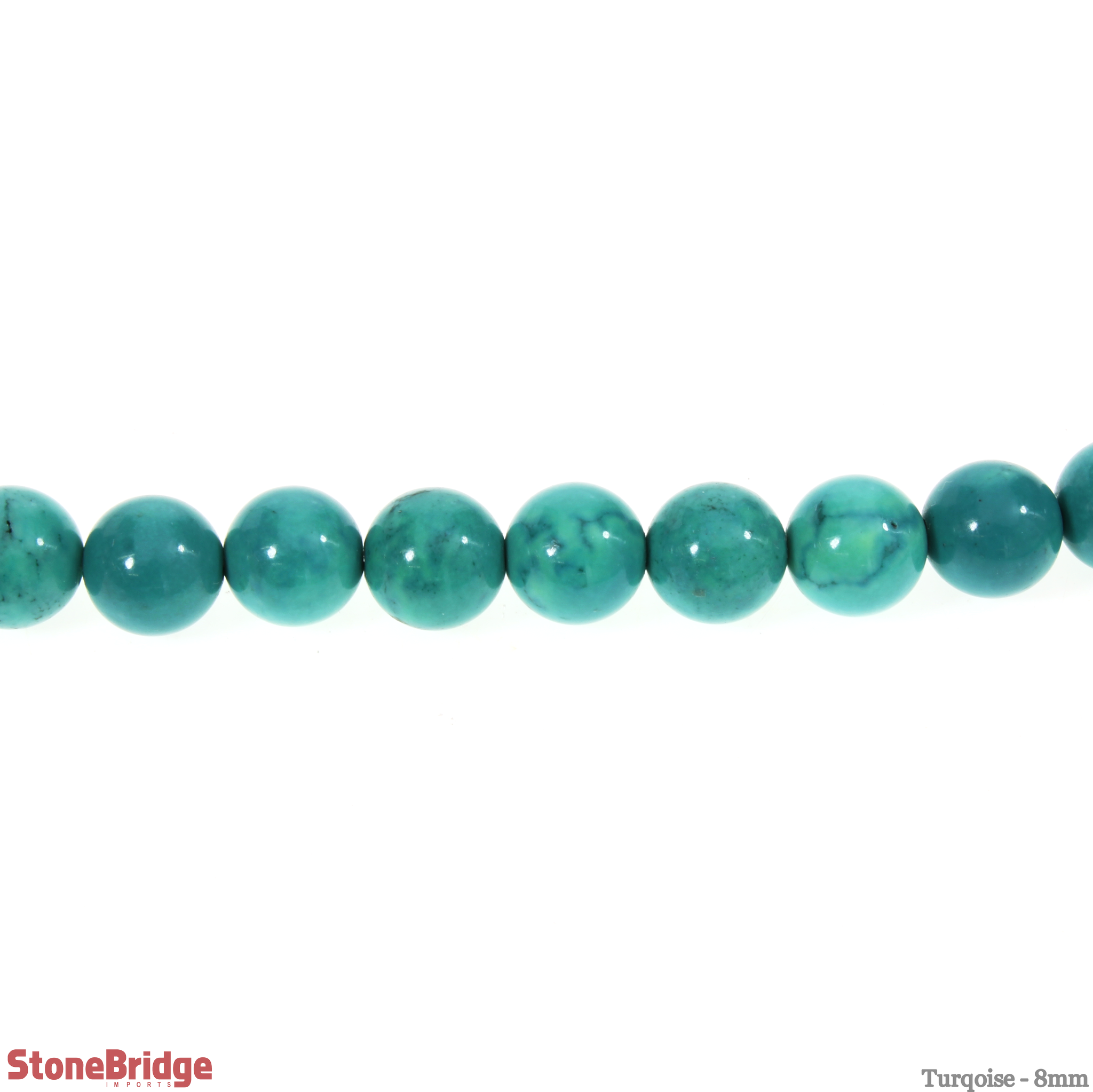 Ce fil turquoise est parsemé de perles rondes de 4 mm de large sur un cordon incolore/transparent de 15 pouces. La turquoise est une magnifique pierre précieuse aux tons bleu clair et vert.