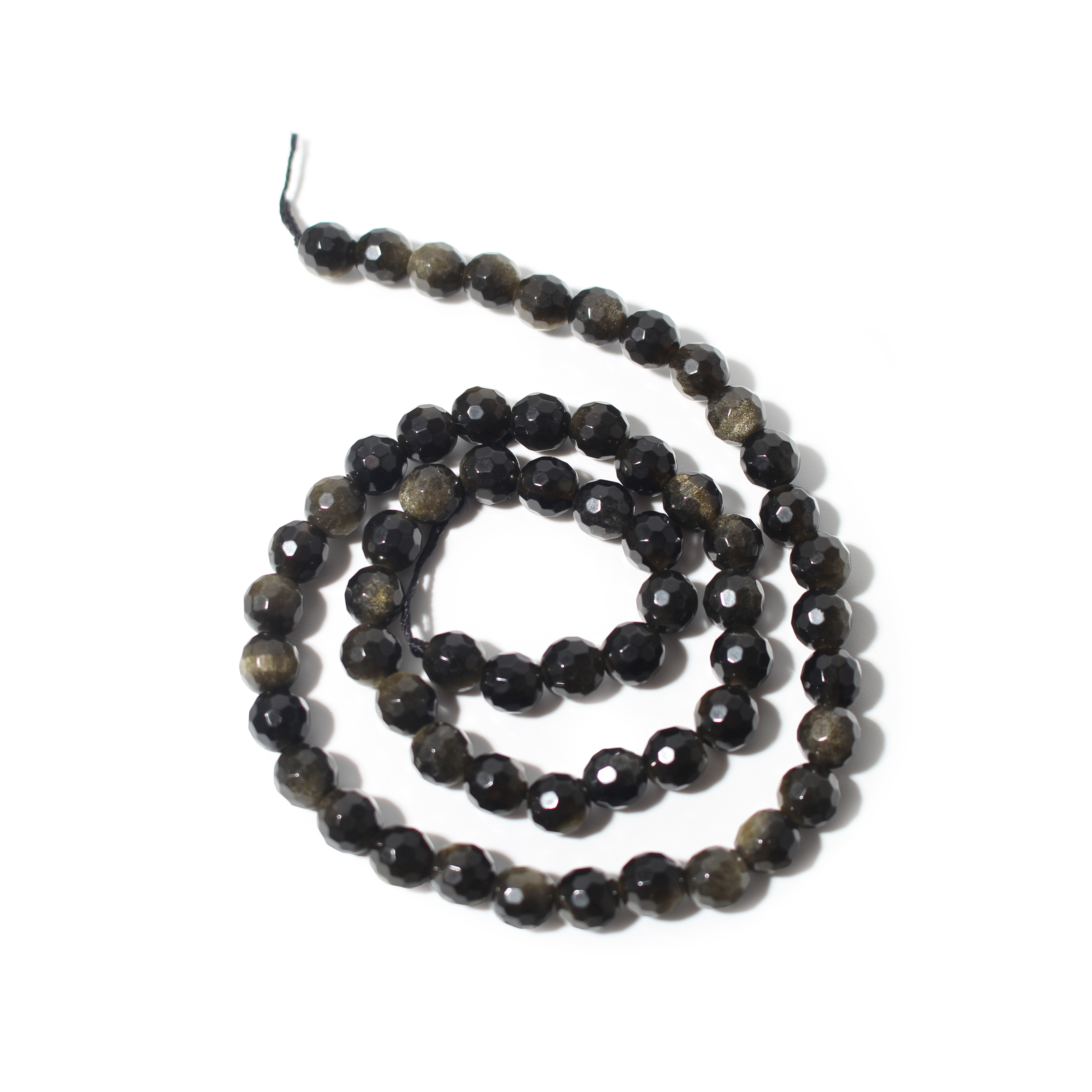 Obsidienne dorée brillante - Fil rond 15" - 6 mm