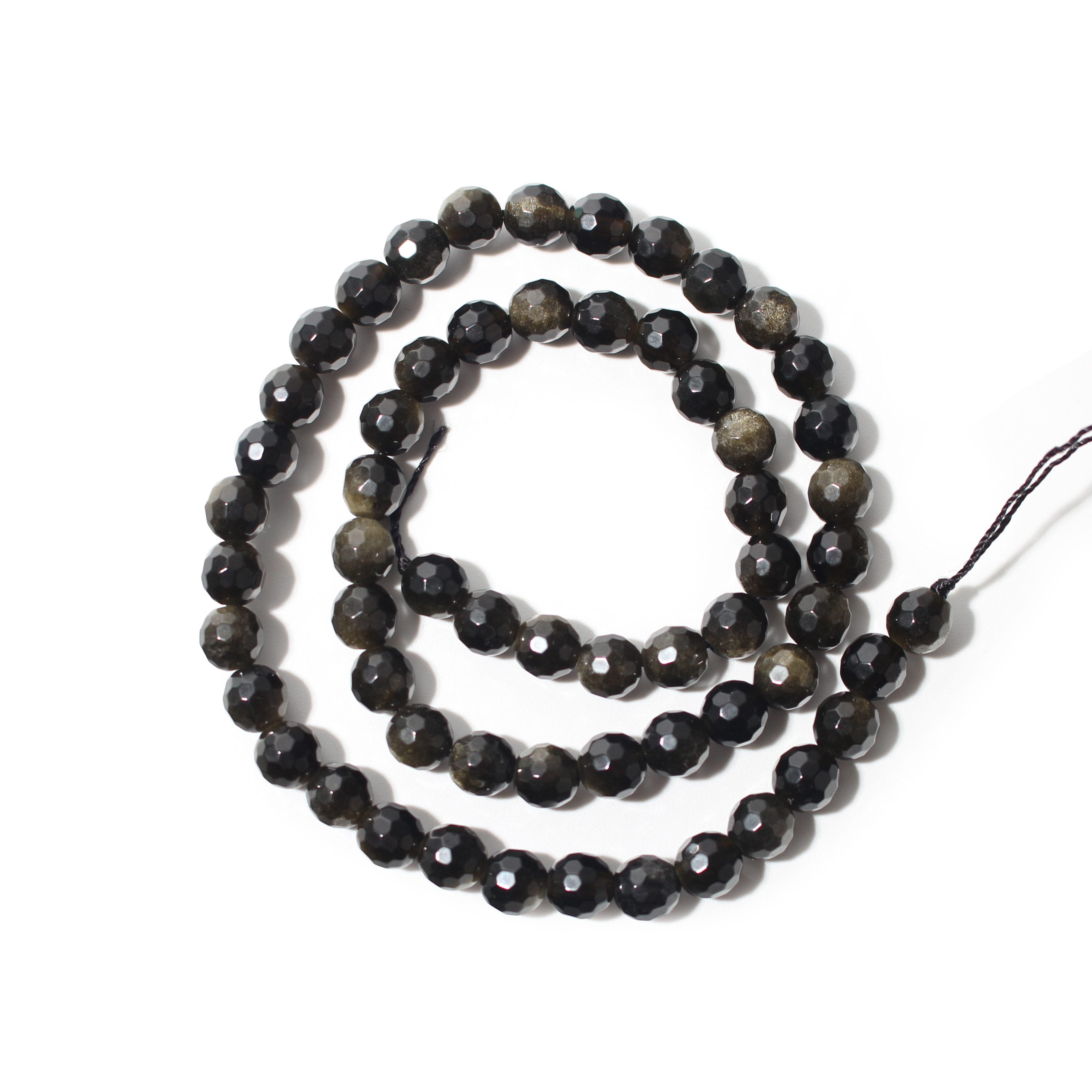 Obsidienne dorée brillante - Fil rond 15" - 6 mm