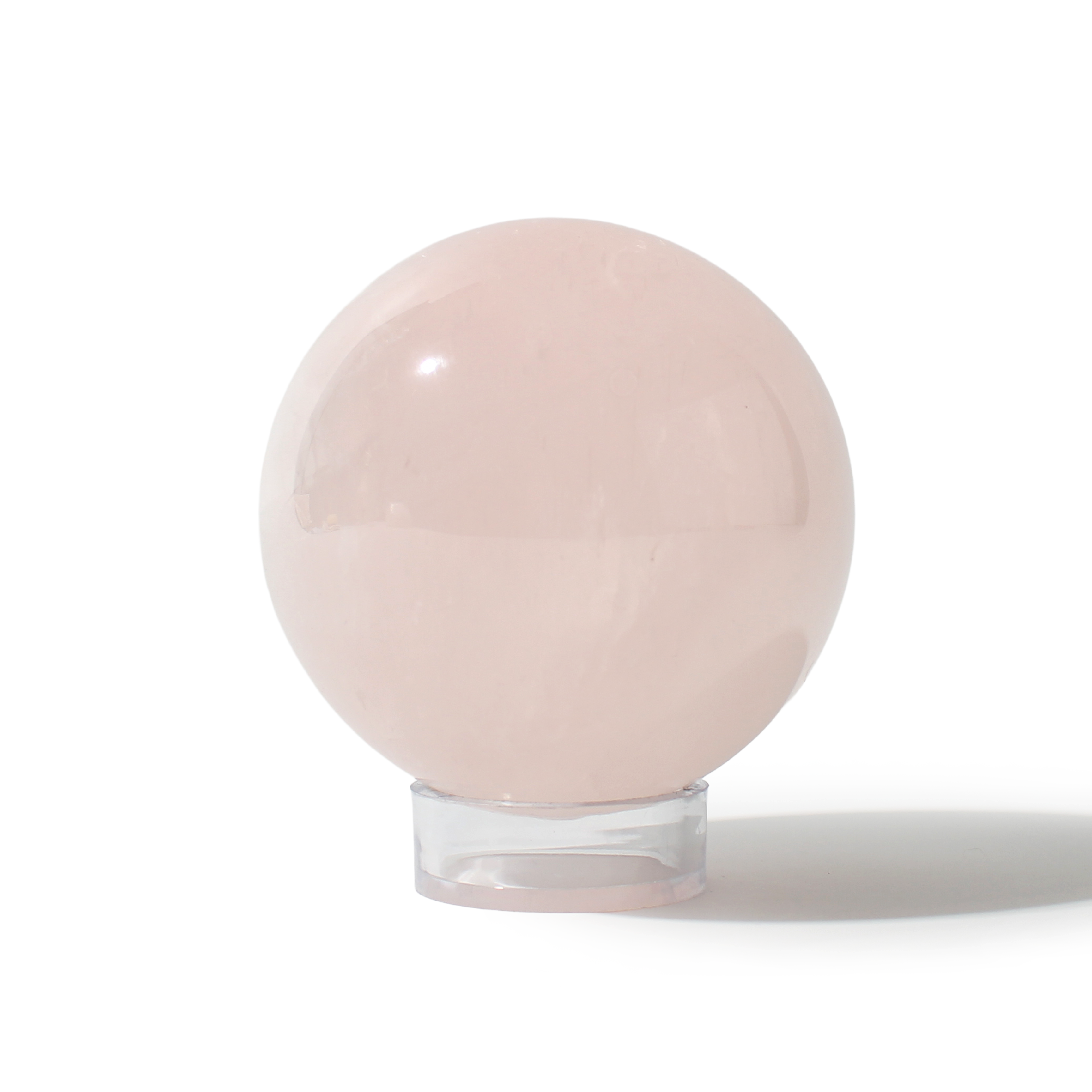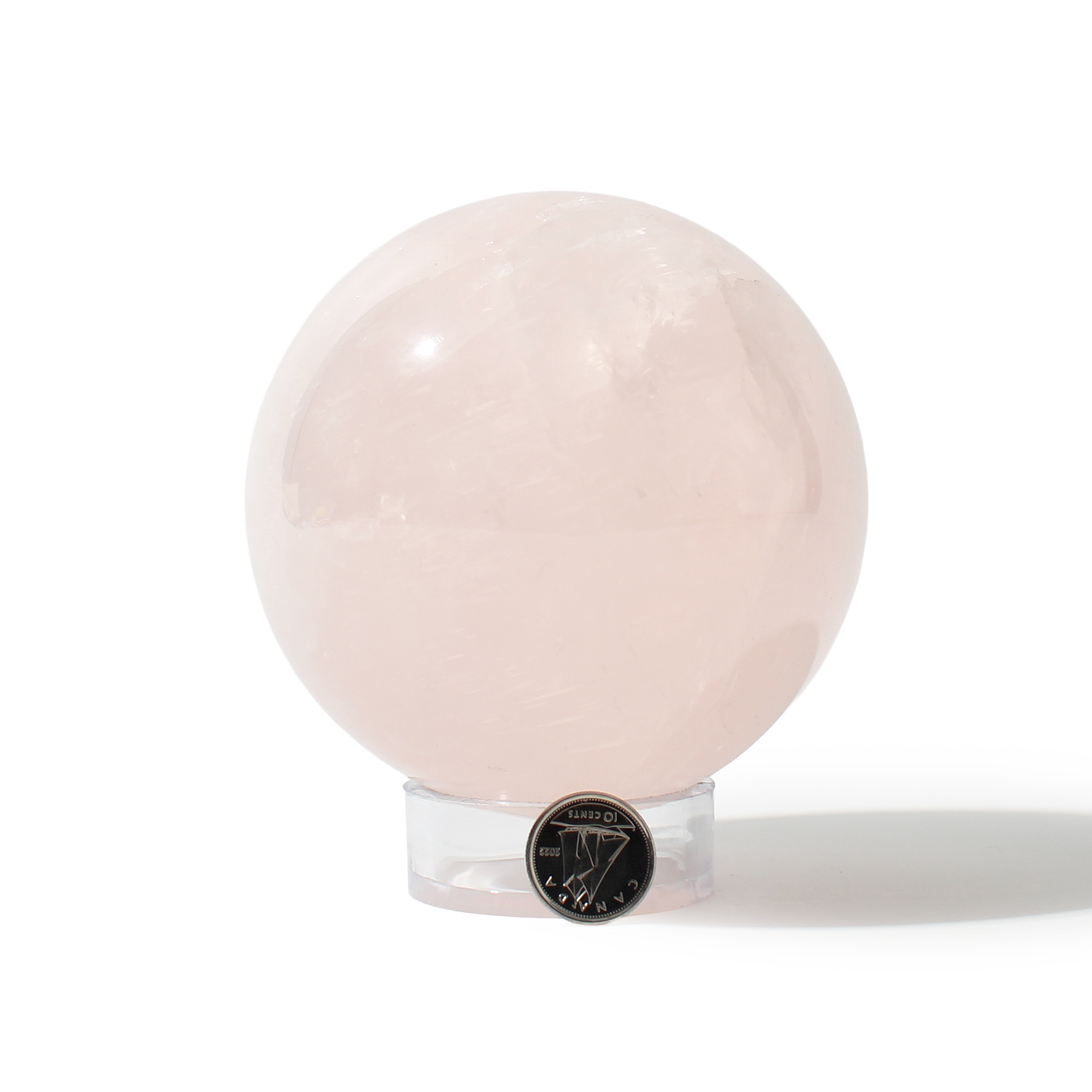 Rose Quartz Sphere Unique #110 - 3 5/8" across and features soft pink tones with a smooth, polished finish. Radiating gentle, loving energy in all directions, it’s ideal for emotional healing and heart-centered spaces.