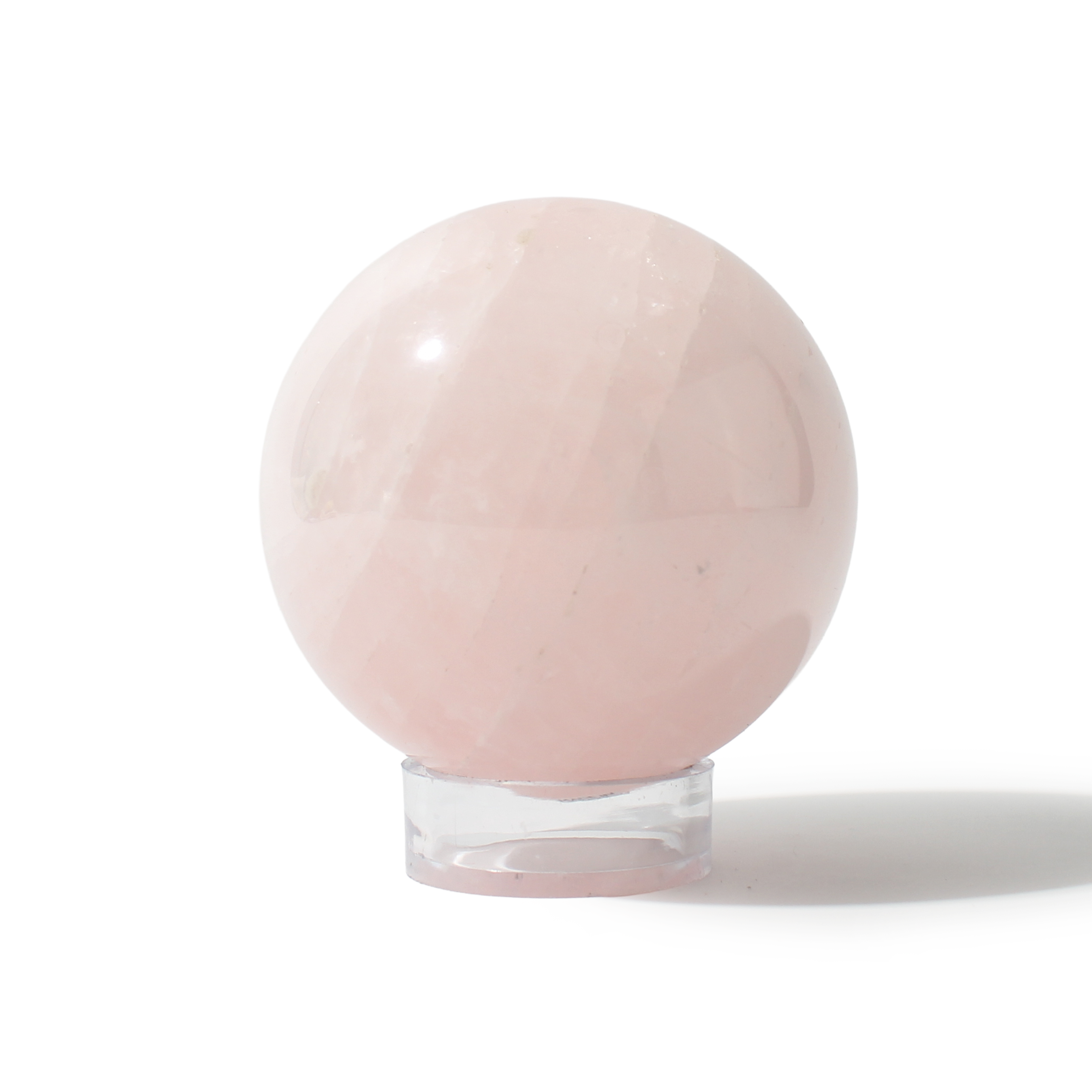 Rose Quartz Sphere Unique #165 - 3 1/2" across and features soft pink tones with a smooth, polished finish. Radiating gentle, loving energy in all directions, it’s ideal for emotional healing and heart-centered spaces.