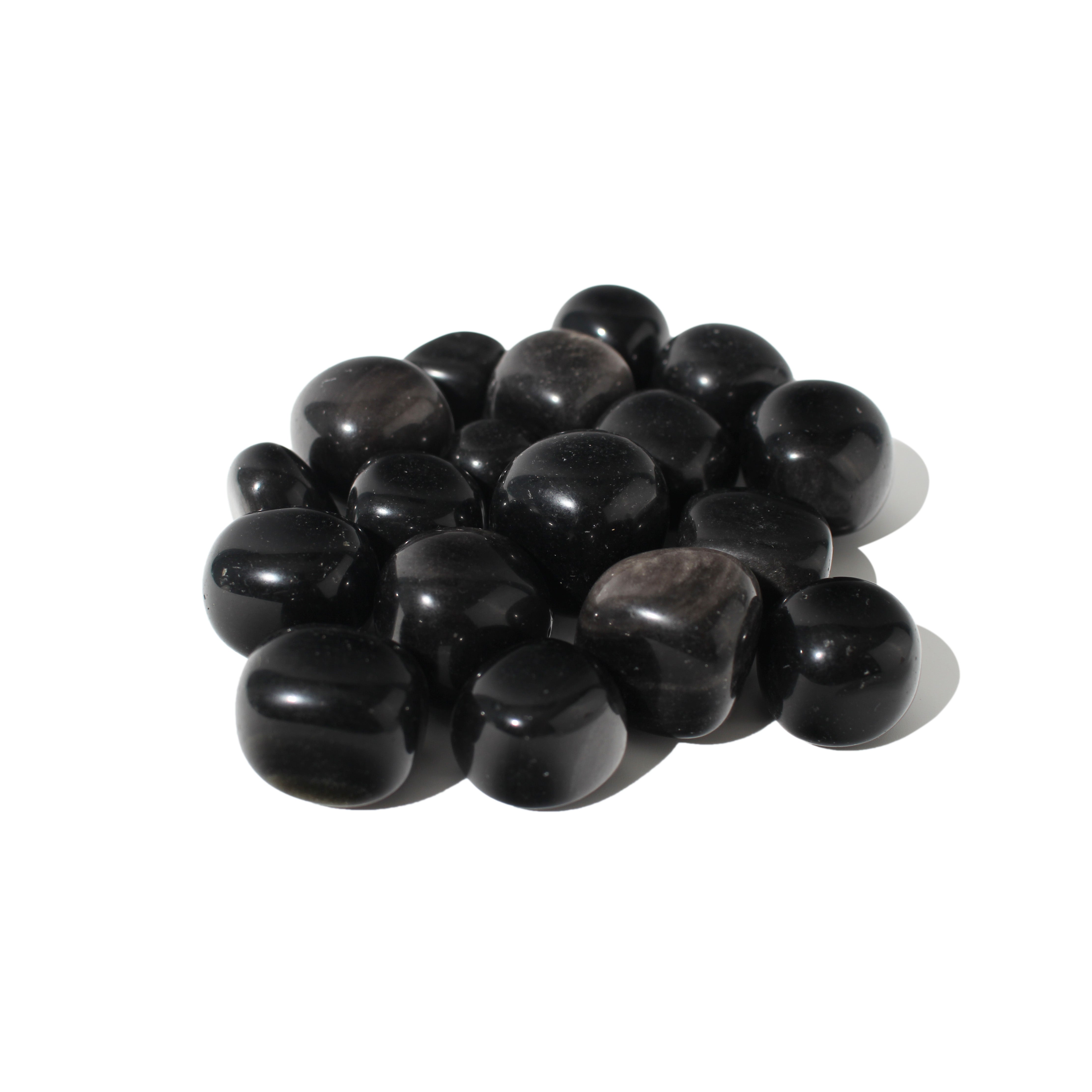 Ces pierres roulées scintillent d'un éclat argenté unique, reflétant la lumière d'une manière captivante qui complète leurs propriétés protectrices et introspectives. L'obsidienne argentée est souvent liée au chakra racine et au chakra du troisième œil, aidant respectivement à l'ancrage et à l'amélioration de l'intuition.