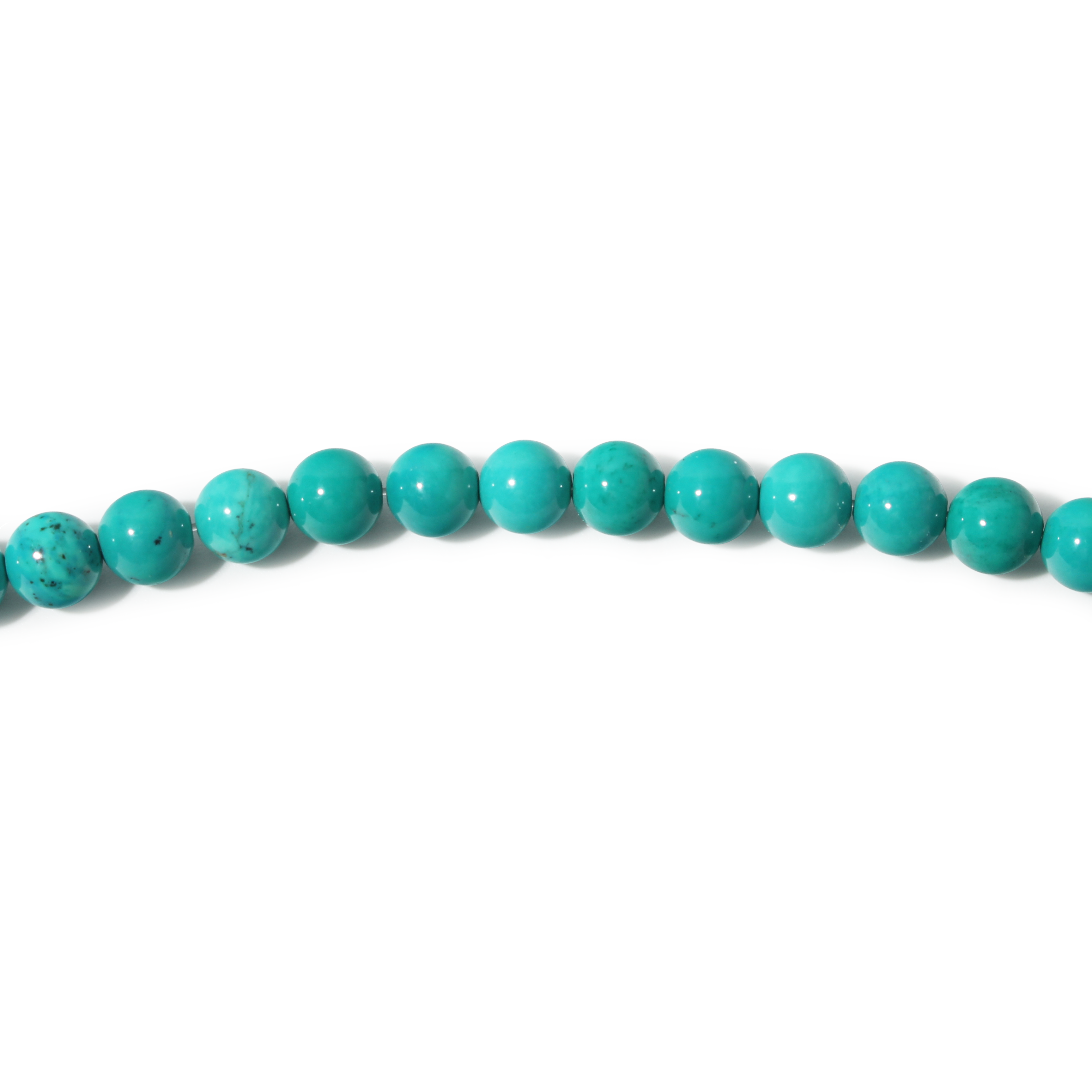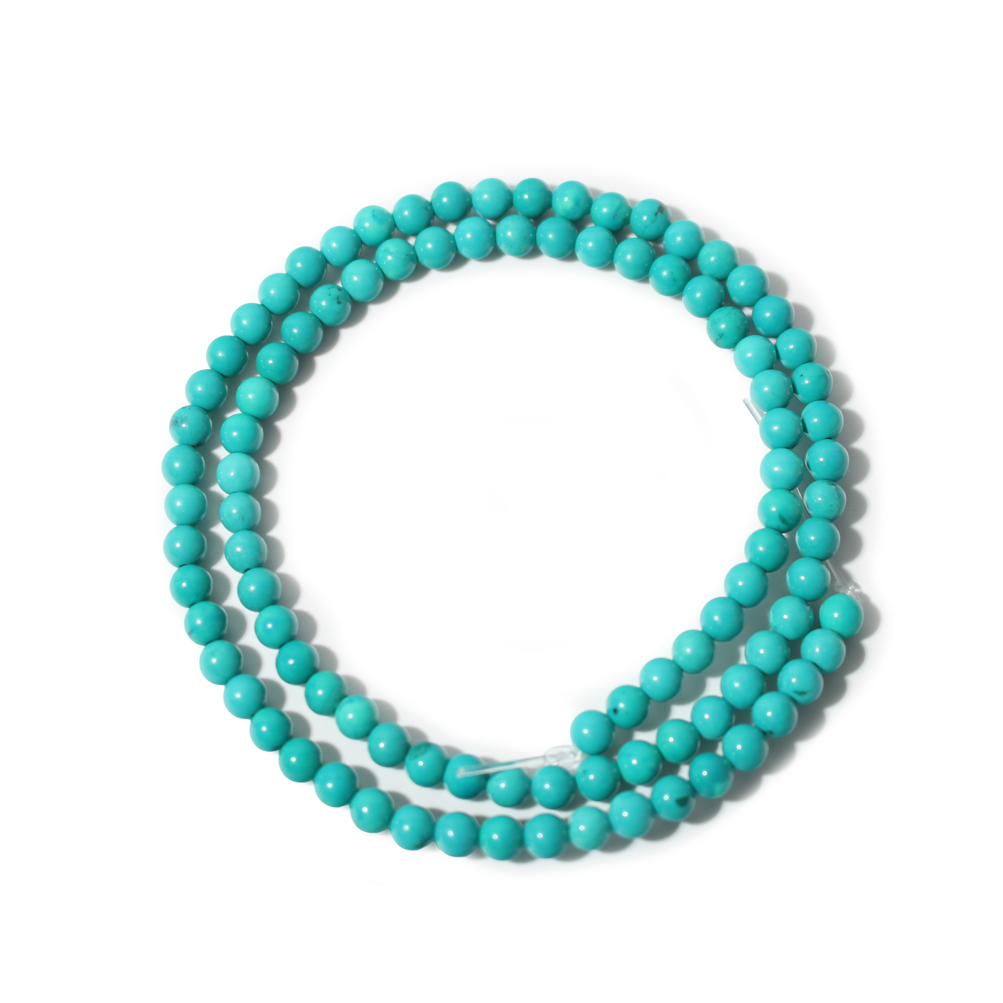 Ce fil turquoise est parsemé de perles rondes de 4 mm de large sur un cordon incolore/transparent de 15 pouces. La turquoise est une magnifique pierre précieuse aux tons bleu clair et vert.