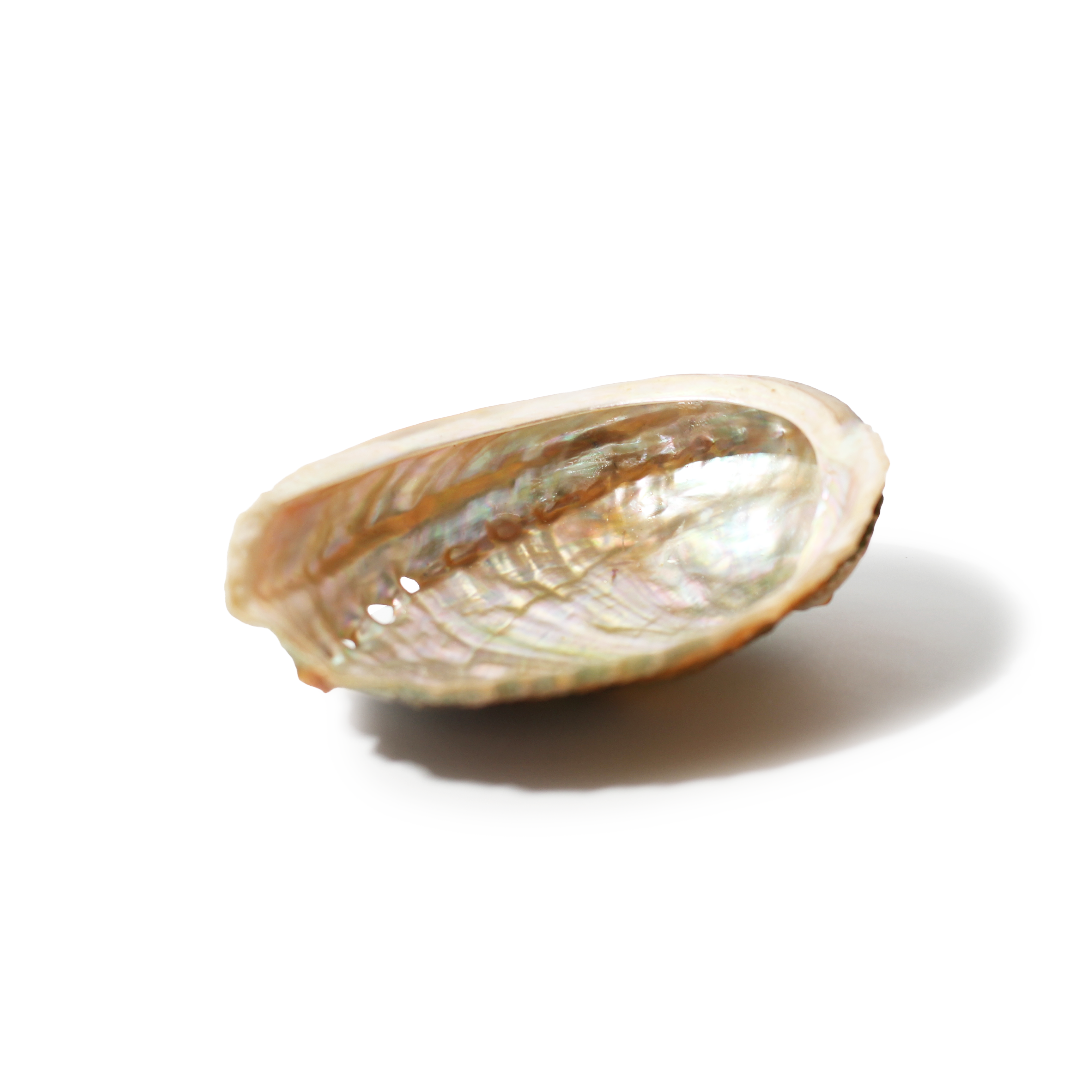 Chaque coquille mesure entre 3 et 4 pouces et présente un mélange unique de teintes blanc argenté, rose, rouge, bleu, vert et violet à l'intérieur, reflétant potentiellement le régime alimentaire de l'ormeau. La coquille extérieure est subtilement striée et discrètement terne, complétant la nacre irisée qui tapisse son intérieur.