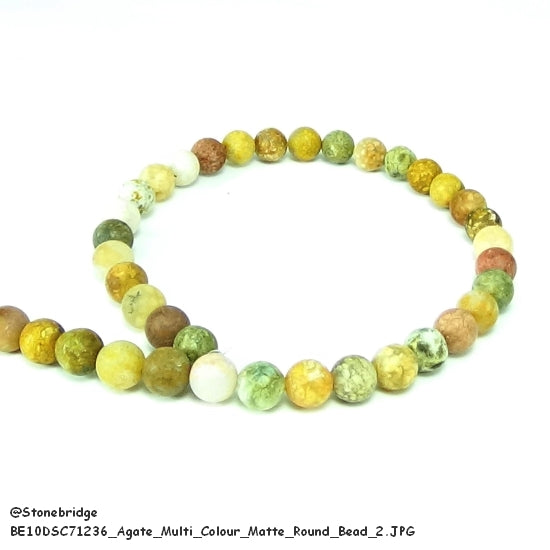 Prix ​​de gros sur Agate Multi Colour Matte - Perle ronde 15" brin - 6mm