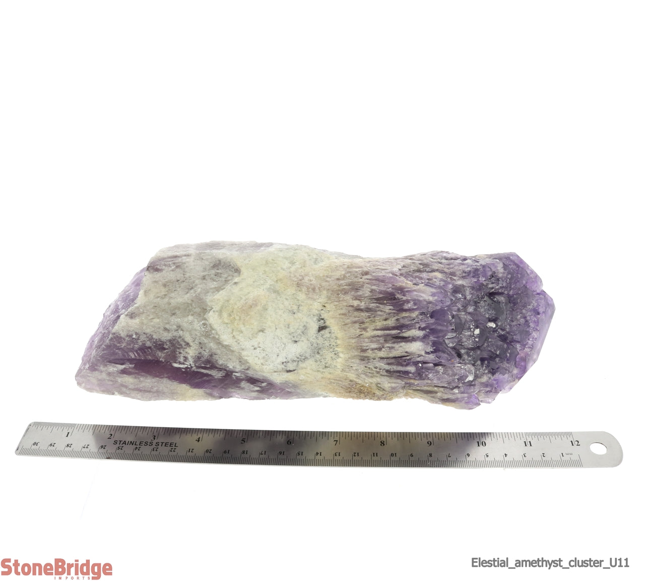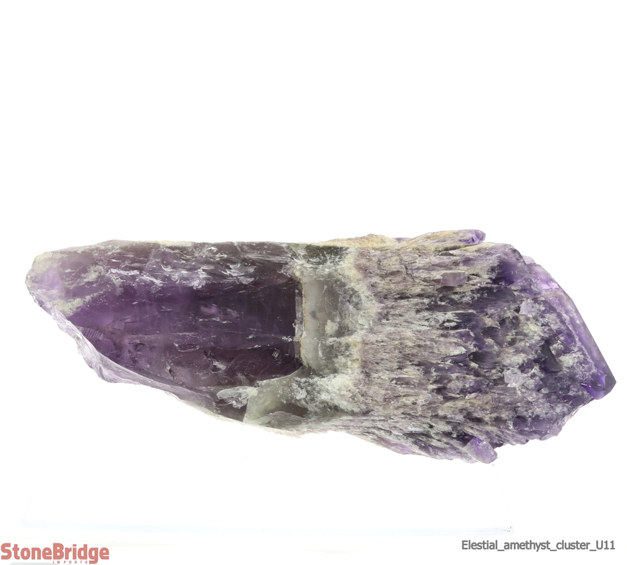 Amethyst Elestial Quartz ClusterElestial quartz are multi-layered crystals that grow over a surface of etched or layered quartz. The elestial amethyst cluster also has rare formation of points growing elongated to the main matrix making it a truly unique natural piece. This Brazilian Cluster has points growing with beautiful light to deep purple colours, good termination and good translucency.Elestial quartz is a crystal known to have extremely high vibrations and be a very powerful stone for spiritual growth.The crystal can aid those who are looking to change their life, and provide a stronger connection to spirit and to the angelic realms.