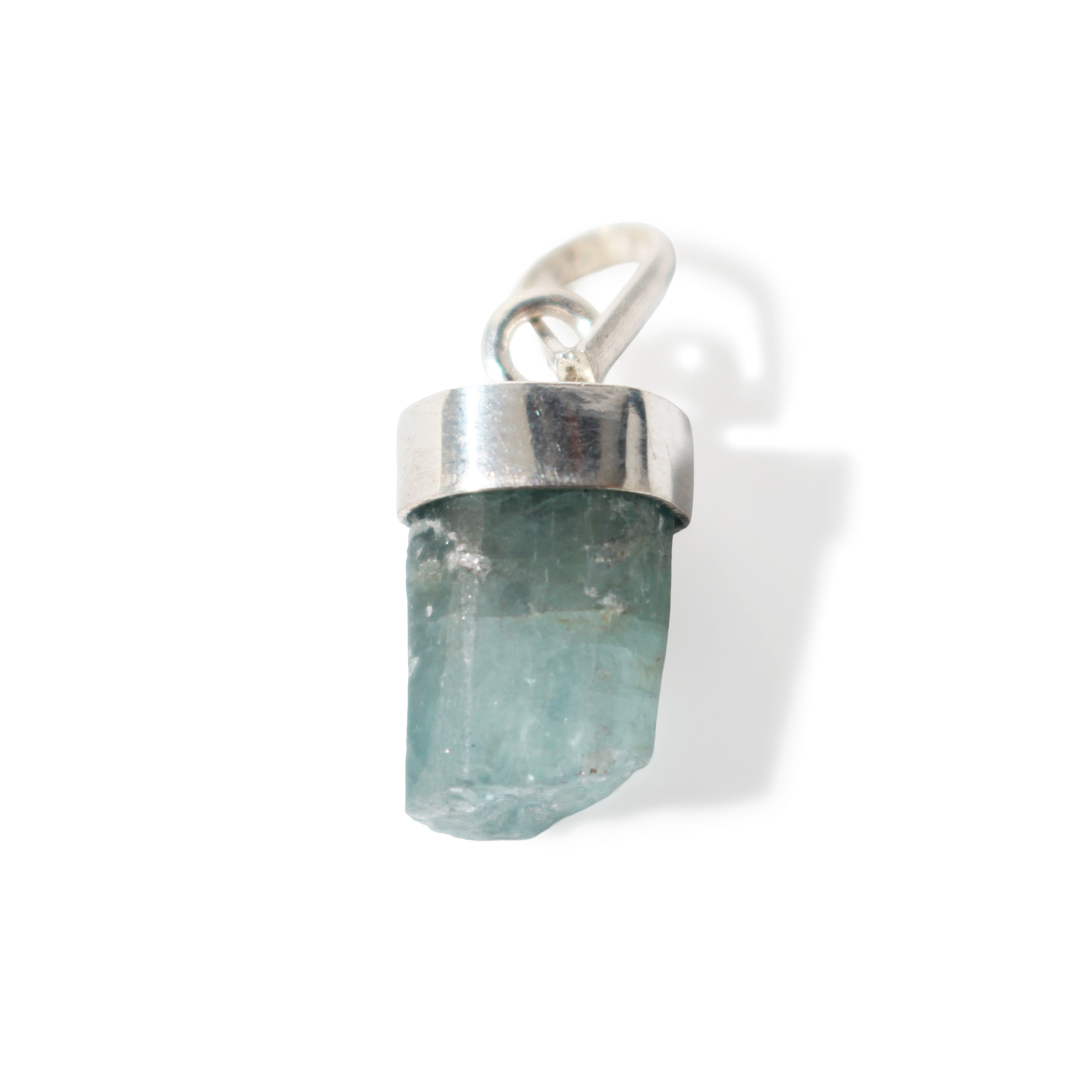 This Aquamarine Rough Small Pendant features a raw, sea-blue crystal set in a minimalist frame that highlights its natural texture and calming energy. Cool and serene, it’s a subtle yet powerful piece for everyday wear.