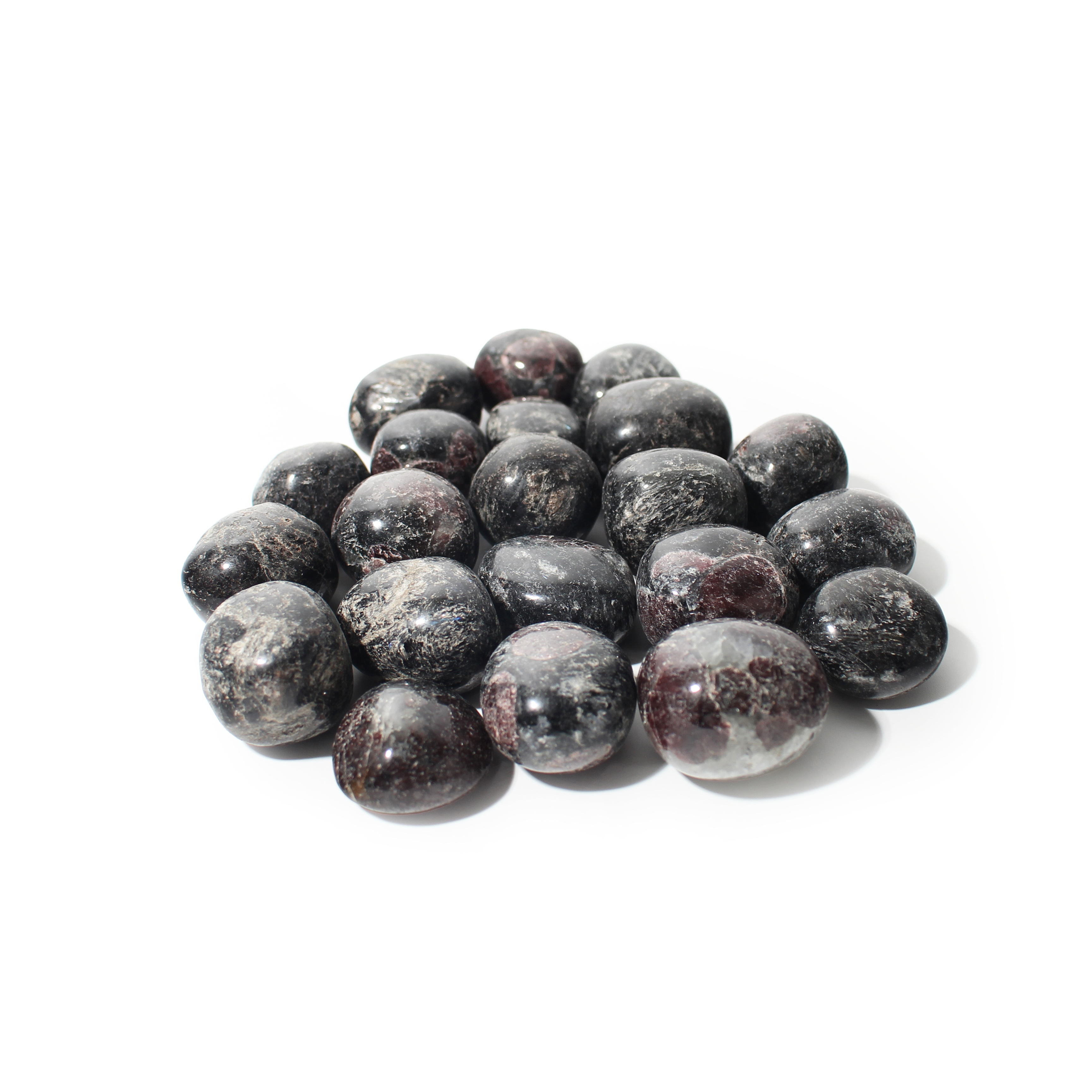 These Garnet with Astrophyllite Tumbled Stones combine deep crimson tones with flashes of bronze and gold, polished smooth for a rich, grounding presence. Each piece radiates strength, passion, and cosmic insight.