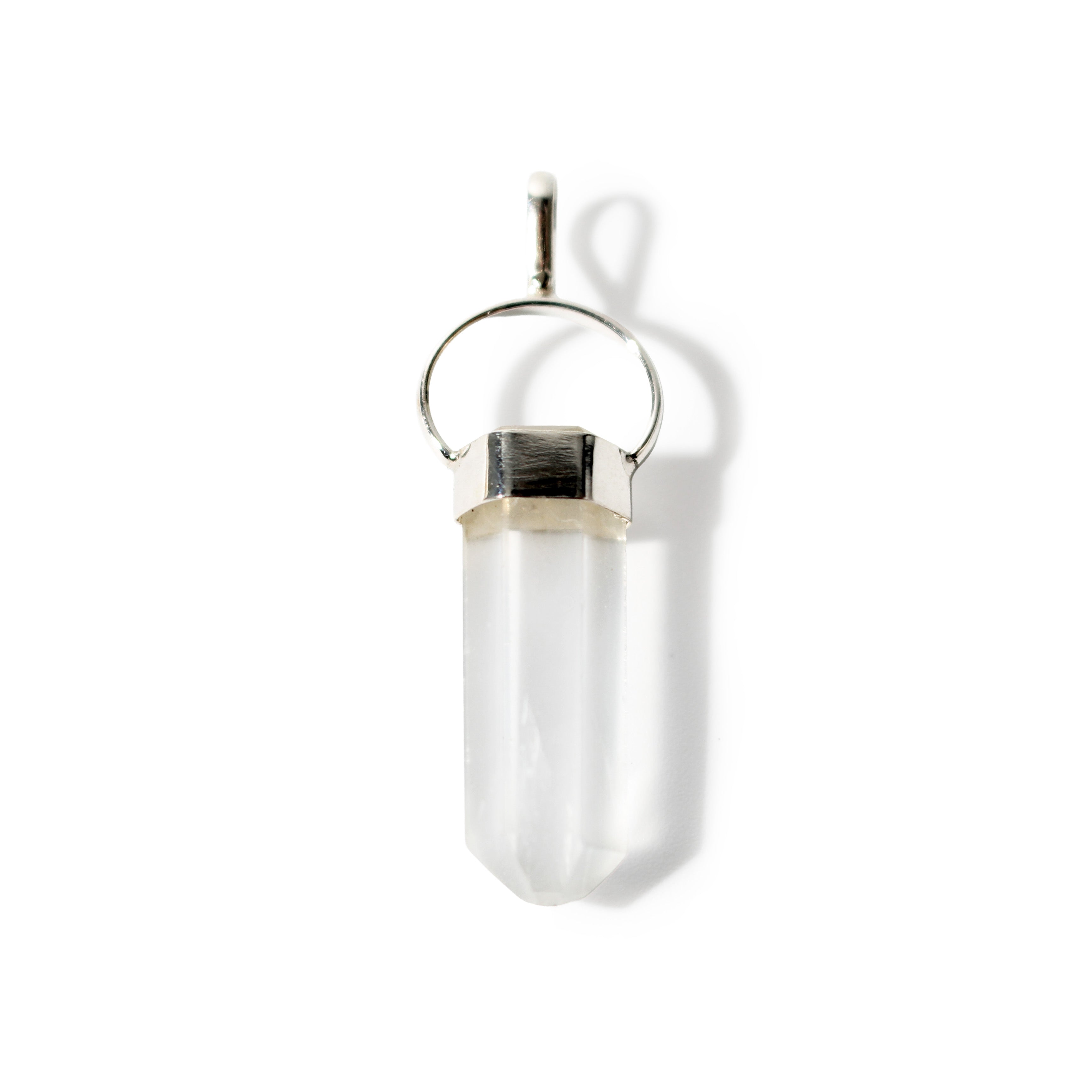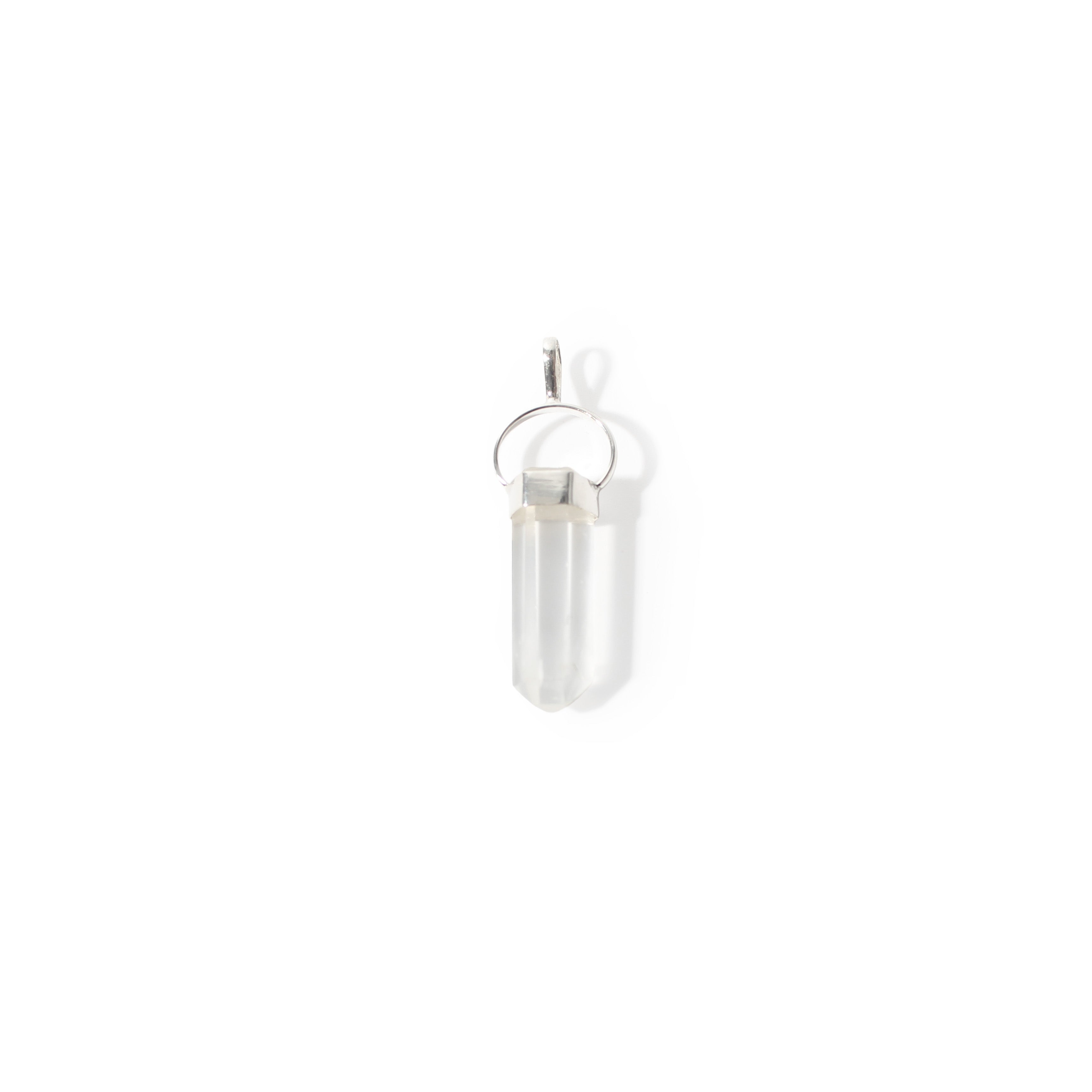 Pointe de cristal de quartz clair suspendue à un crochet en argent. Toutes les pierres ont une grande transparence tandis que chacune présentera ses propres caractéristiques.