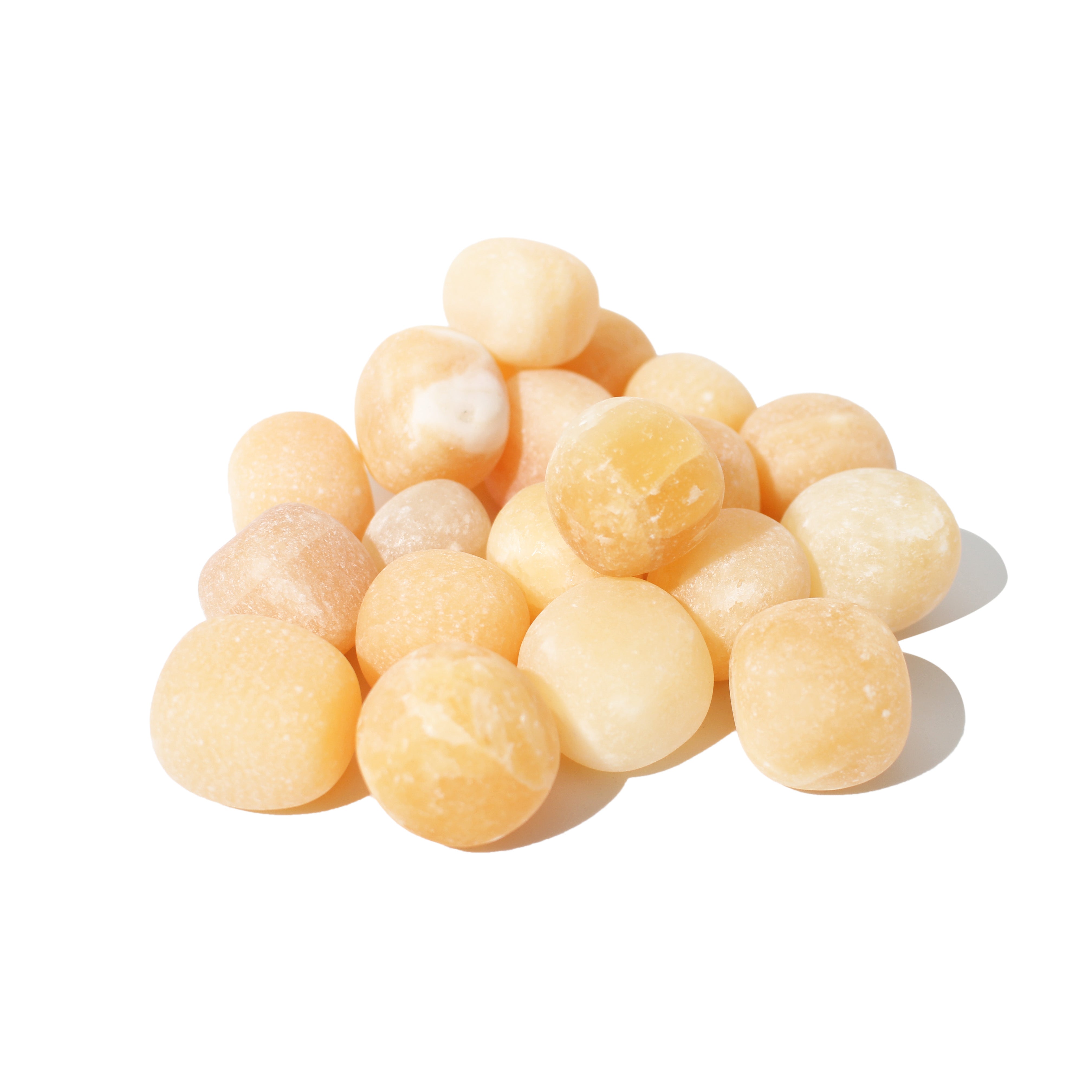 These Orange Calcite Tumbled Stones from Mexico glow with vibrant citrus tones—sunny orange, amber, and honey, polished smooth for a cheerful, energizing feel. Each stone radiates warmth and positivity.