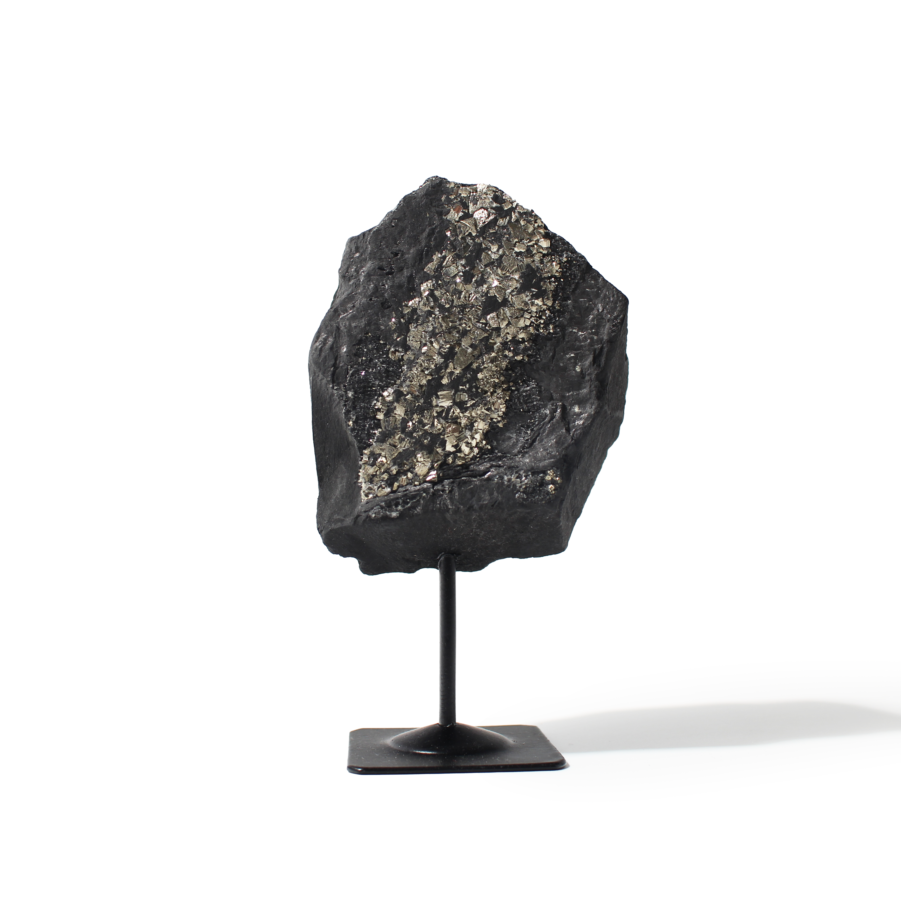 Un amas de cristaux de pyrite à la ténacité cassante sur un basalte noir [morceau]https://stonebridgeimports.ca/c/174-rock-mineral-chunk-in-bulk/) est une pièce de décoration unique qui égaye n'importe quel environnement, maison ou espace de travail et constitue une excellente idée de cadeau. Avec ce cadeau, l'Univers accorde une abondance de conscience de soi, de perspicacité et d'apprentissage. Les minéraux de pyrite présentent un lustre métallique, une brillance dorée/laitonnée et des propriétés réfléchissantes.
