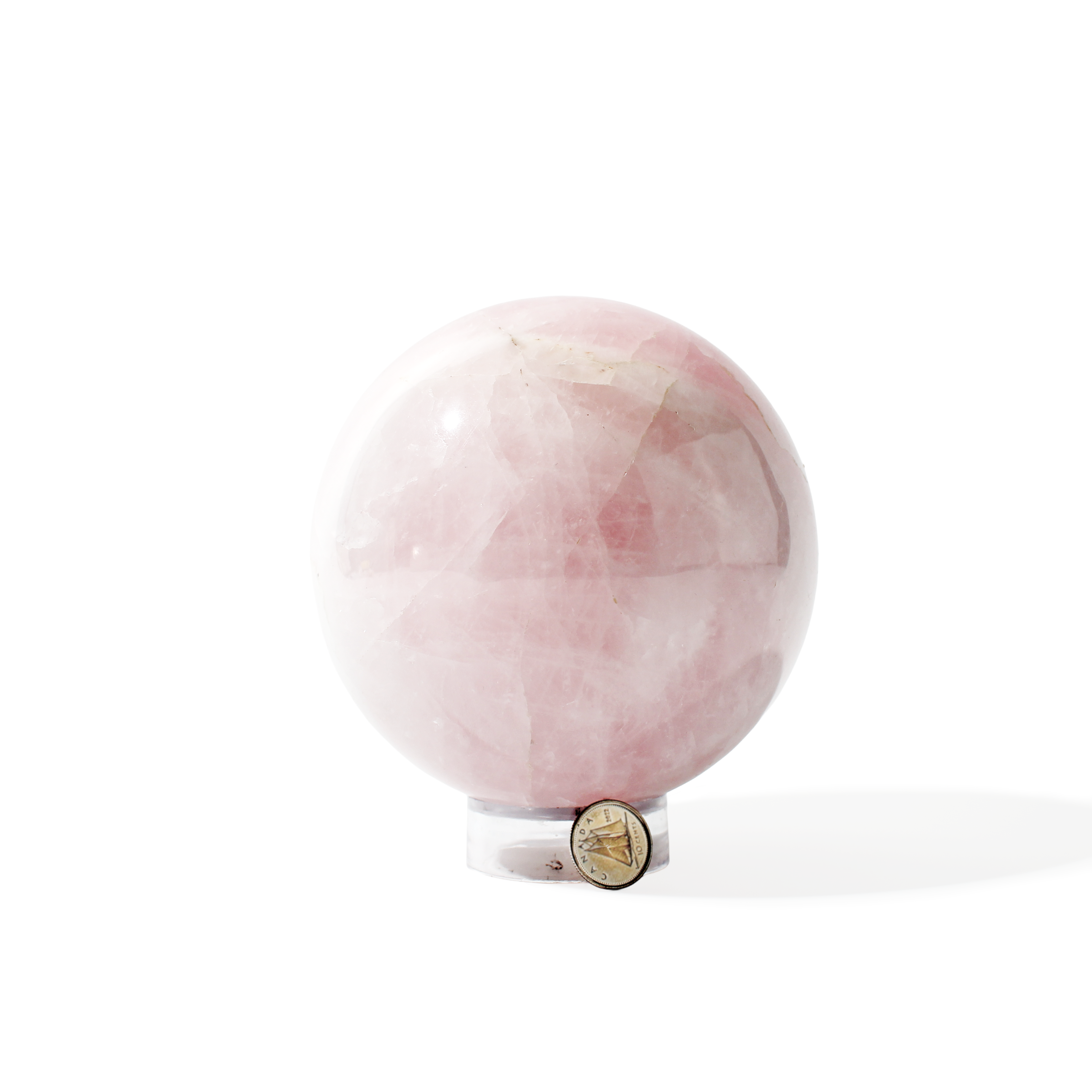 Rose Quartz Sphere Unique #22 measures 4 1/4" across and features soft pink tones with a smooth, polished finish. Radiating gentle, loving energy in all directions, it’s ideal for emotional healing and heart-centered spaces.