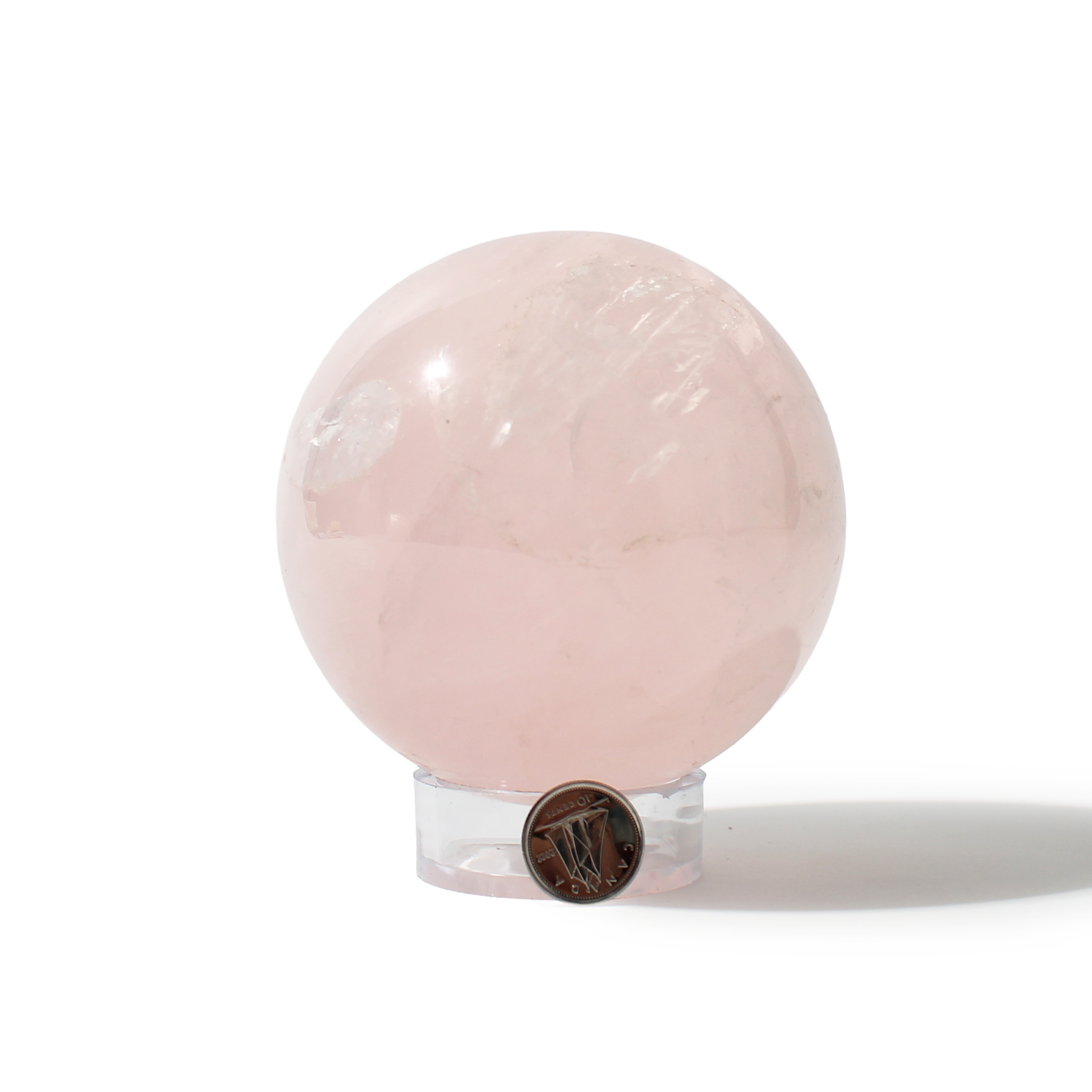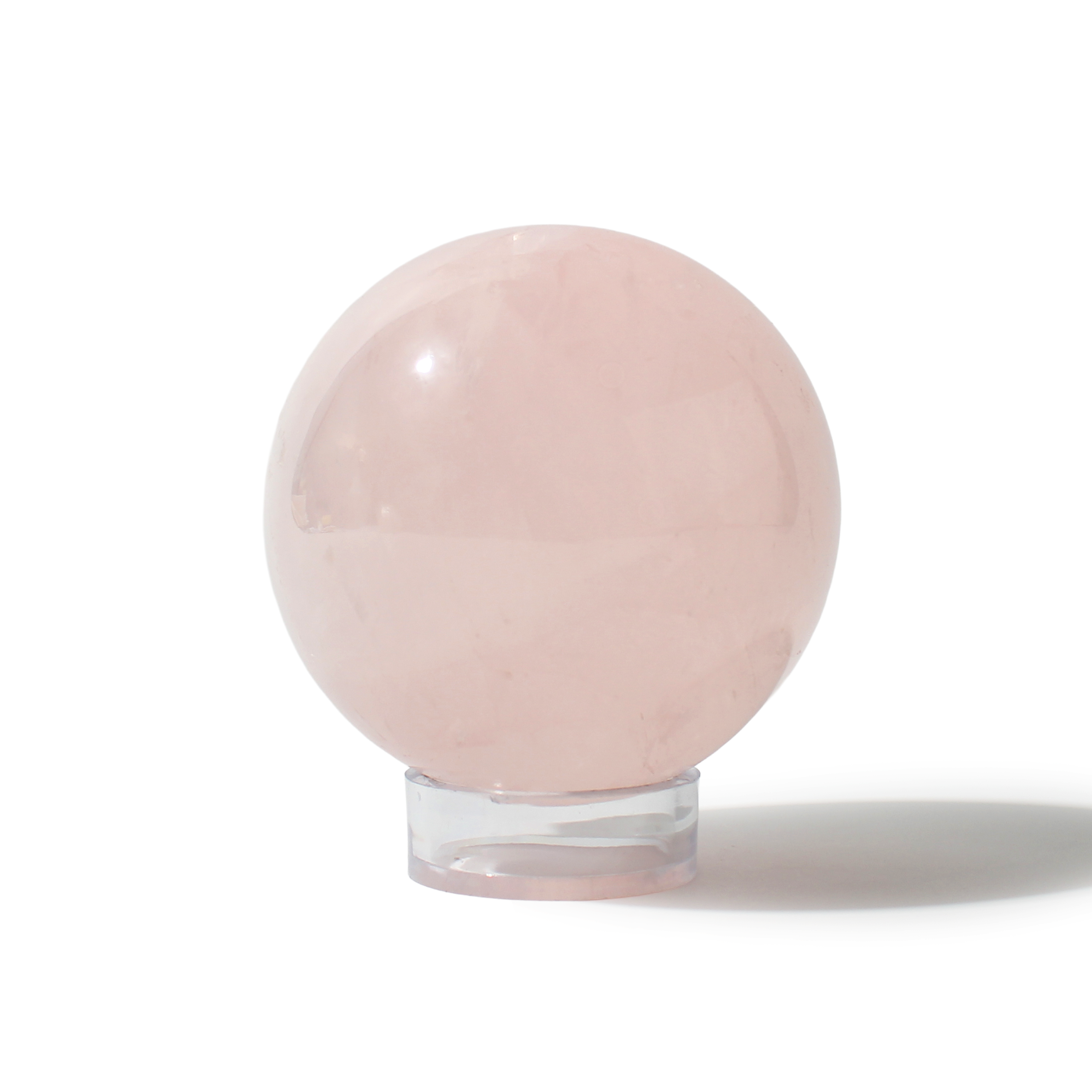 Rose Quartz Sphere Unique #139 - 3 3/8" across and features soft pink tones with a smooth, polished finish. Radiating gentle, loving energy in all directions, it’s ideal for emotional healing and heart-centered spaces.