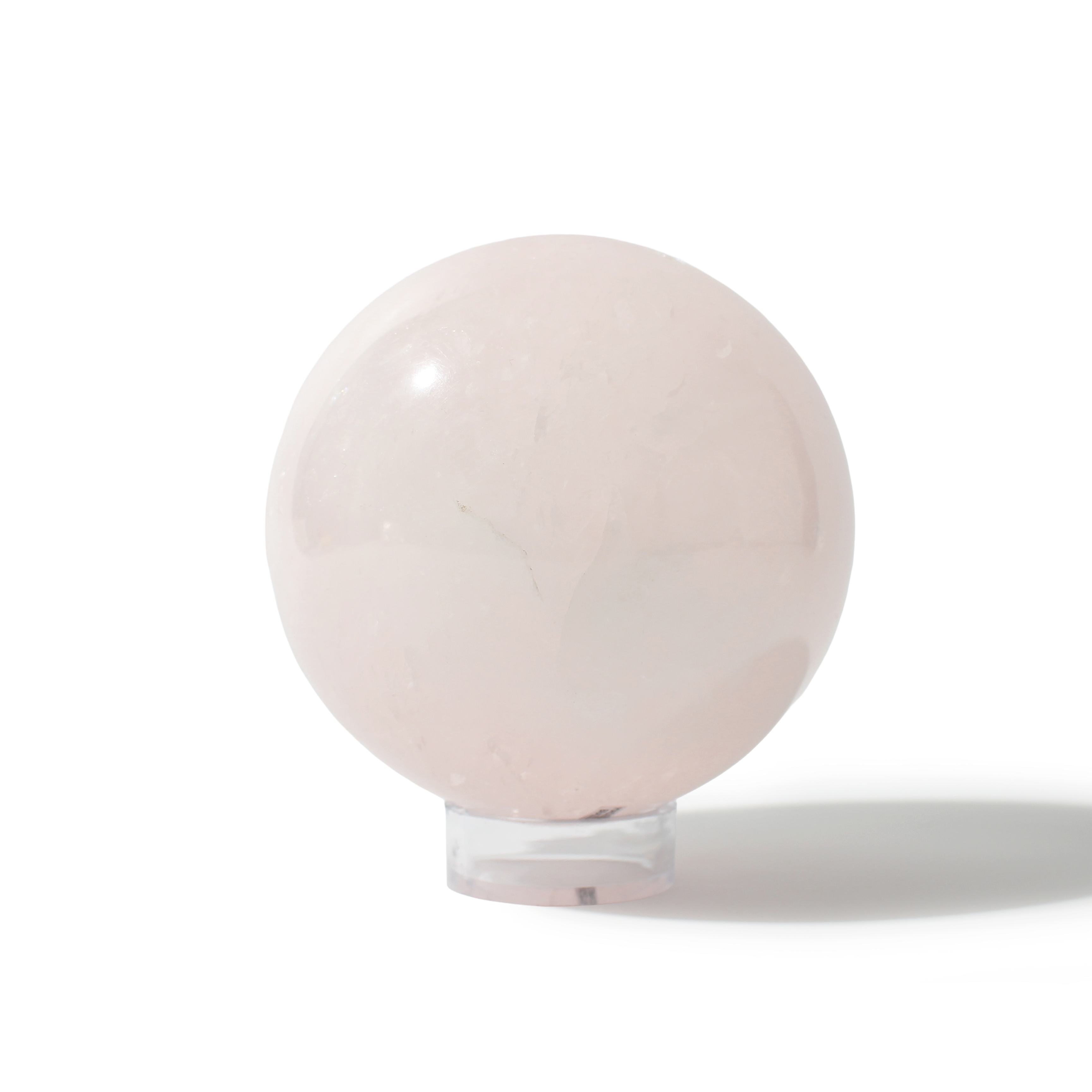 Rose Quartz Sphere Unique #70 - 4 3/8" across and features soft pink tones with a smooth, polished finish. Radiating gentle, loving energy in all directions, it’s ideal for emotional healing and heart-centered spaces.