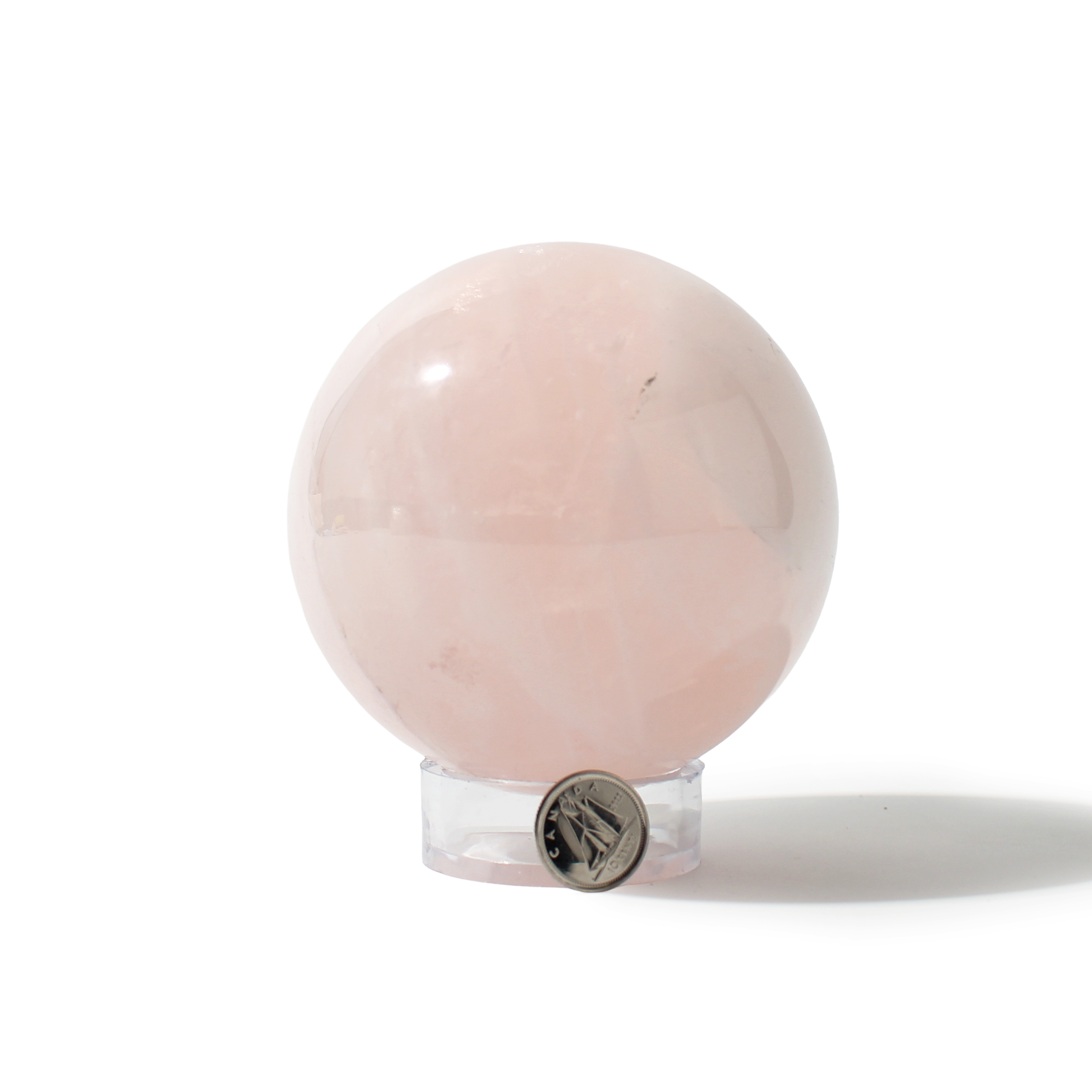 Rose Quartz Sphere Unique #72 - 3 3/8" across and features soft pink tones with a smooth, polished finish. Radiating gentle, loving energy in all directions, it’s ideal for emotional healing and heart-centered spaces.