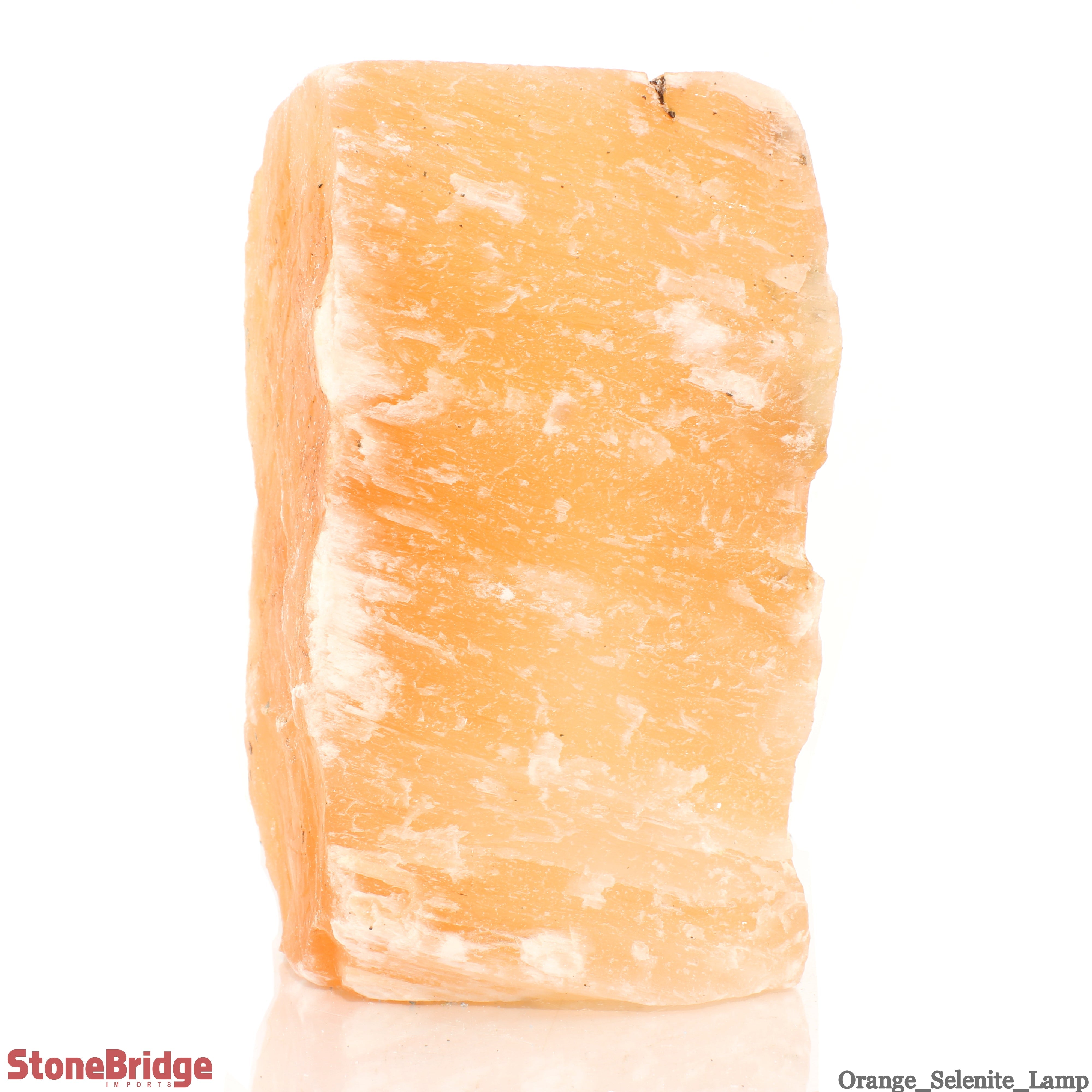 When lighted, large Selenite lamps have a rough surface with an opaque mellow orange glow.