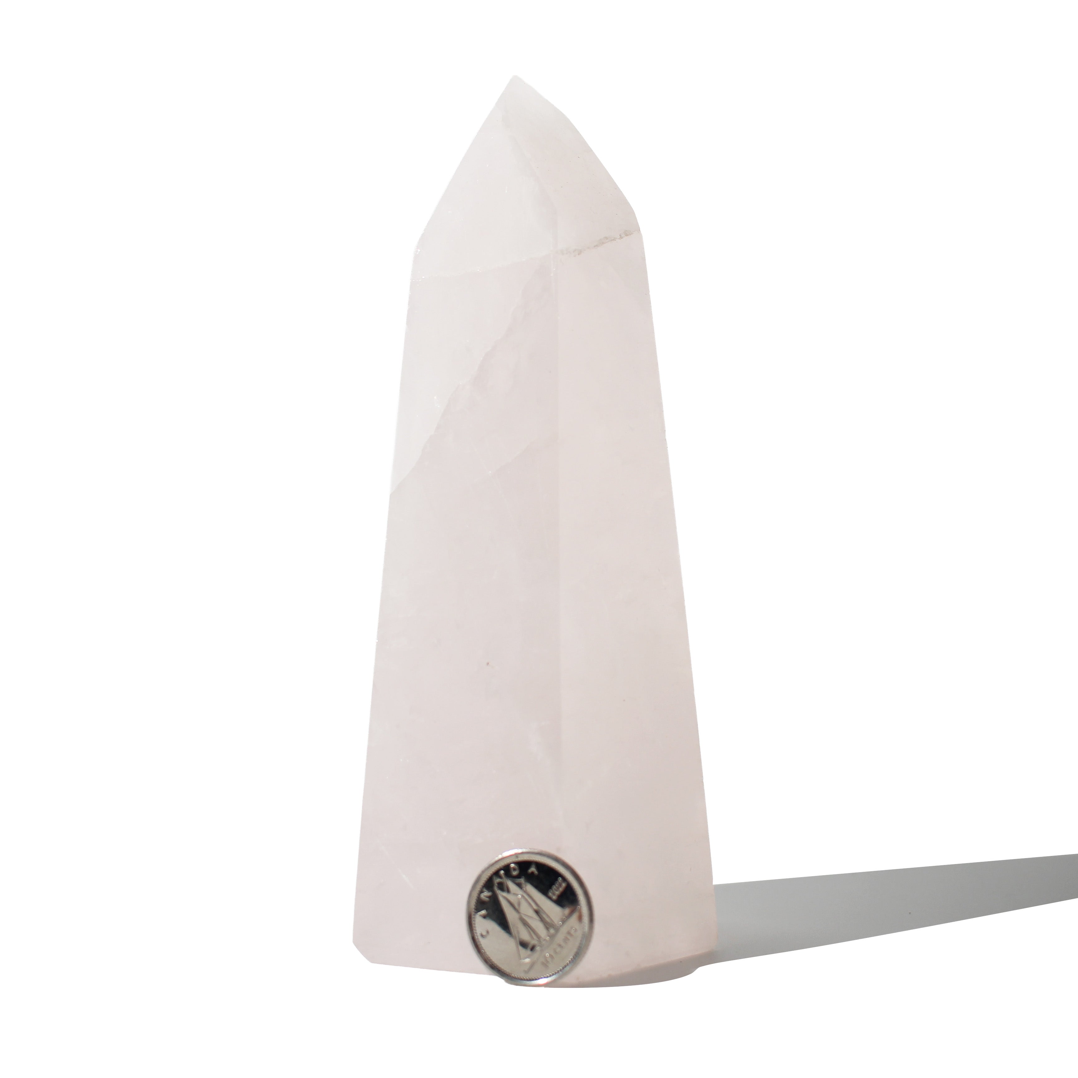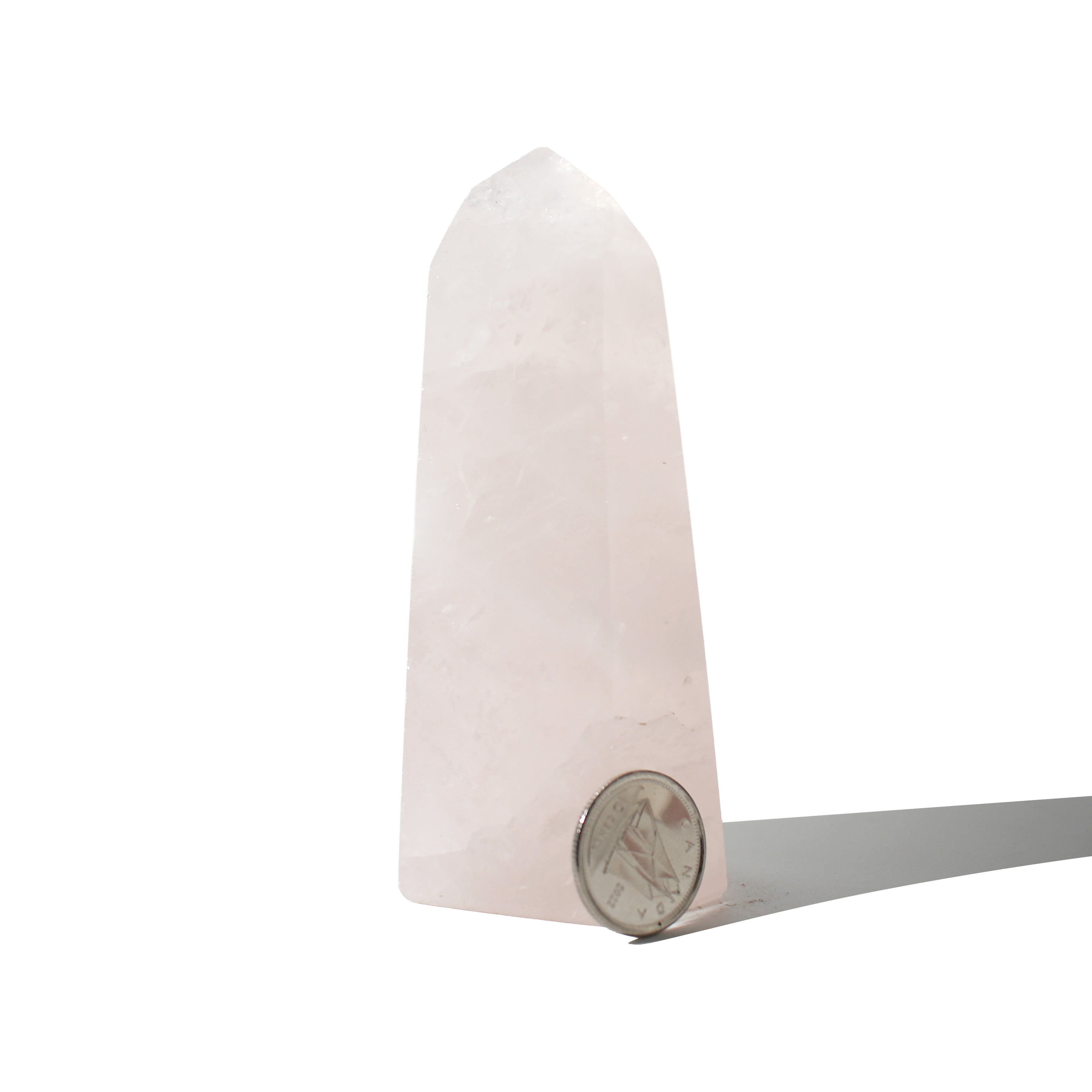 This Rose Quartz A Generator features soft, even pink tones with high clarity and a smooth, polished point, perfect for adding premium-grade quality to your wholesale inventory.