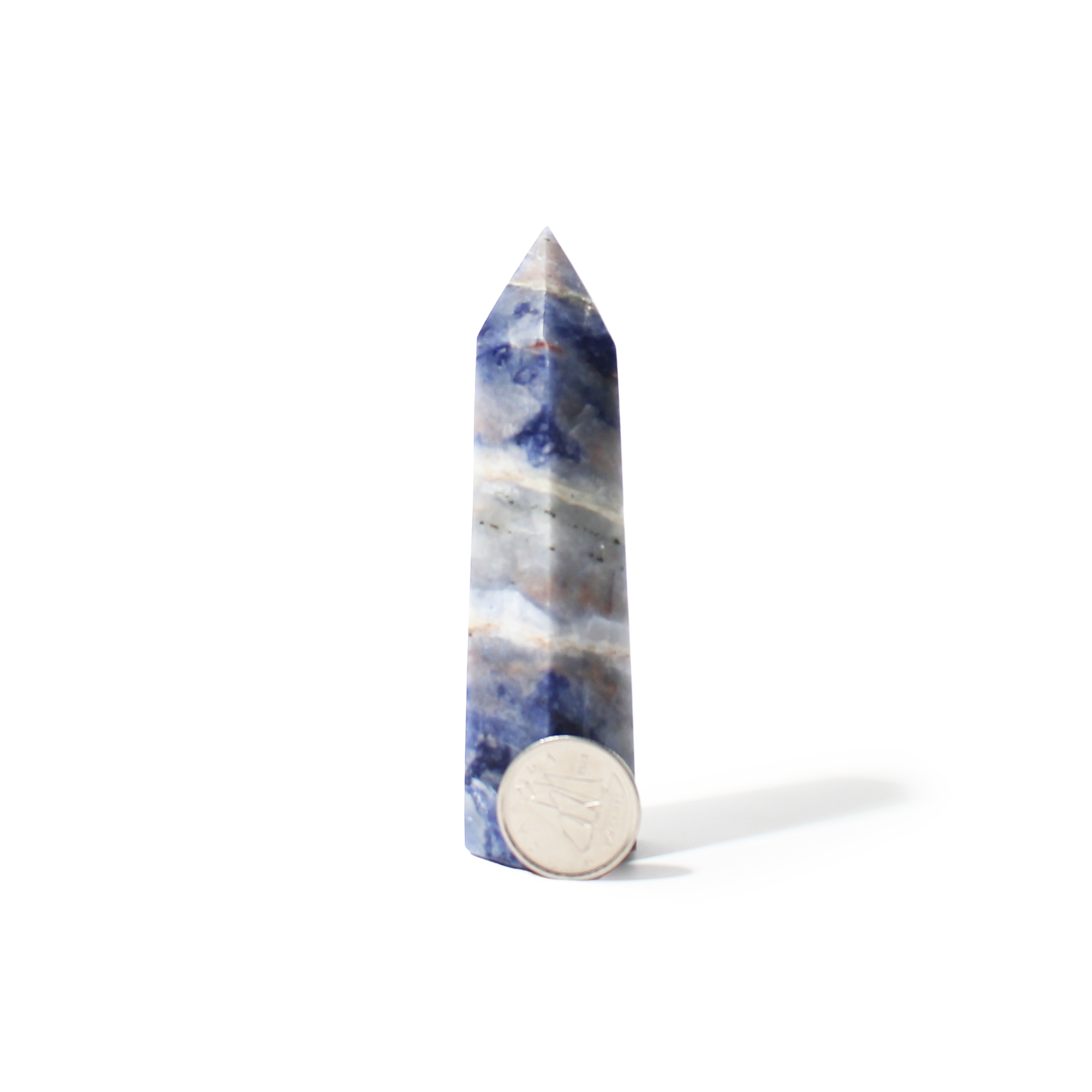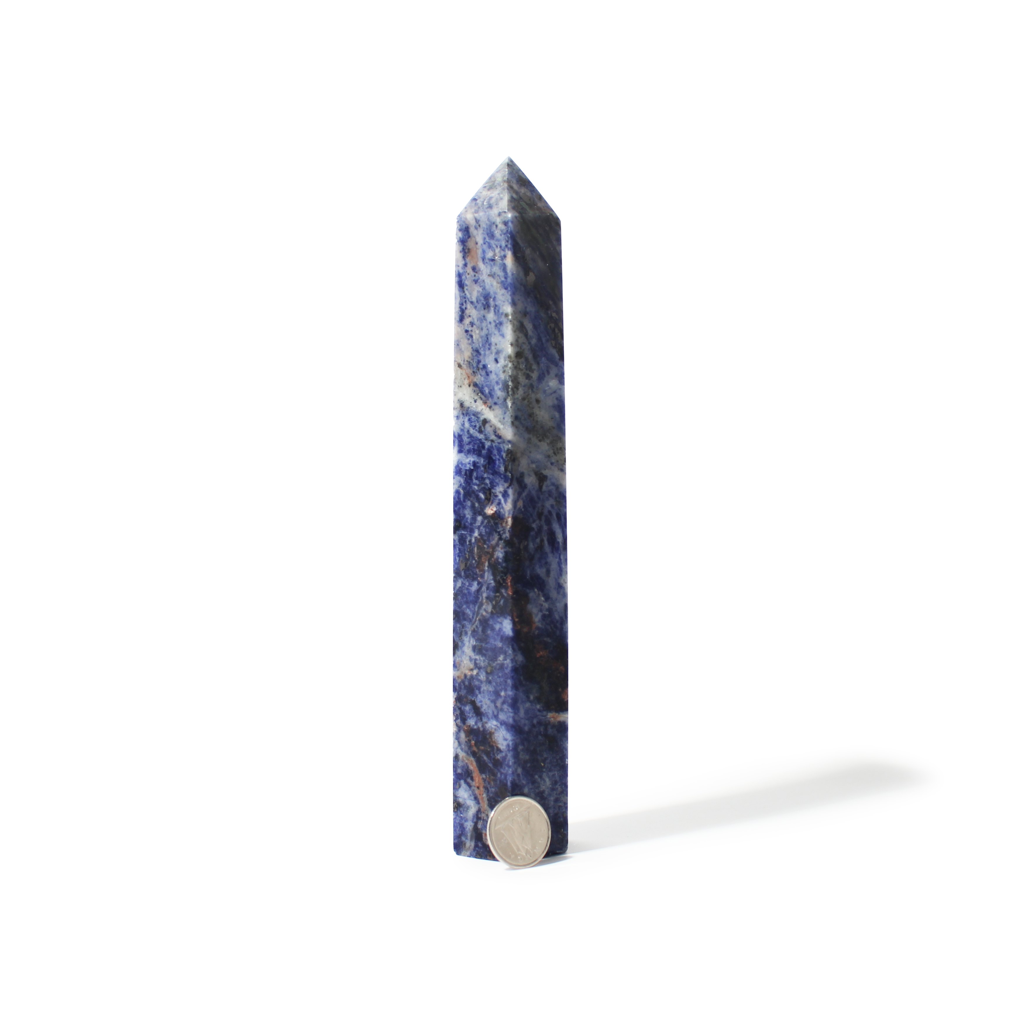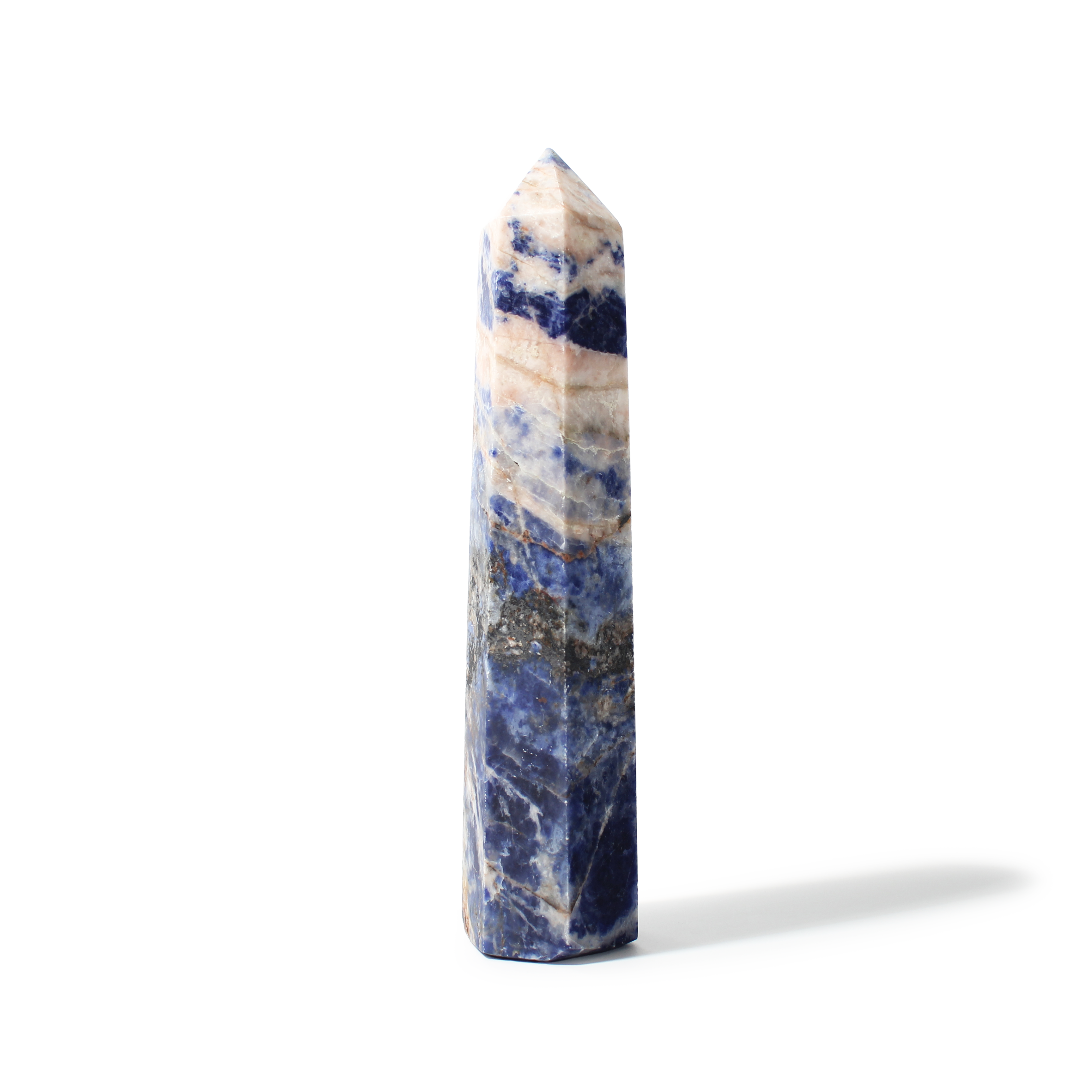This Sodalite Generator features rich blue tones with natural white veining, polished into a pointed tower that channels calm, focused energy. It’s an excellent piece for mental clarity, communication, and spiritual growth.