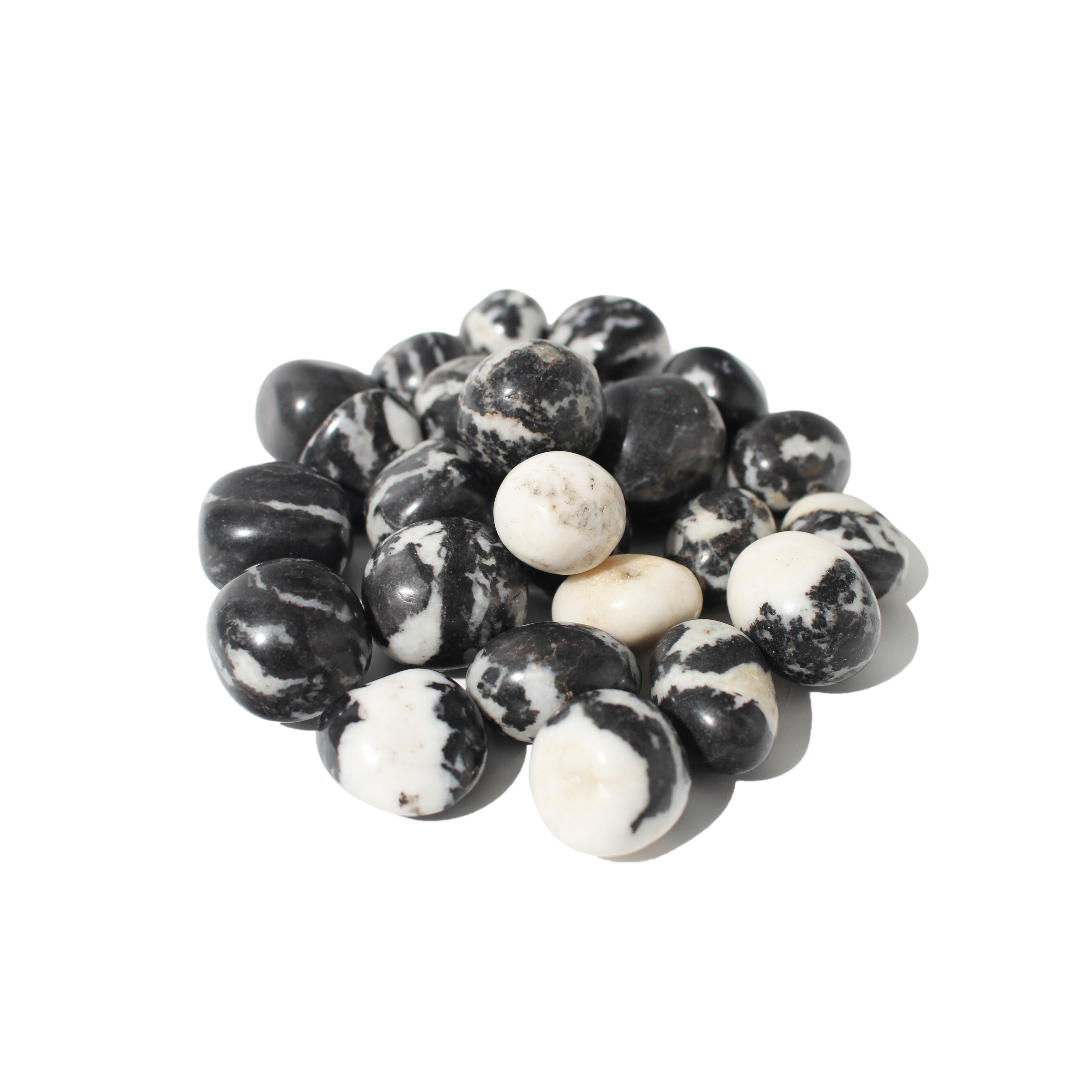 These Zebra Jasper Tumbled Stones feature striking black-and-white banding, polished smooth for a bold, high-contrast finish. Each stone carries a wild, balanced energy that’s both grounding and motivating.