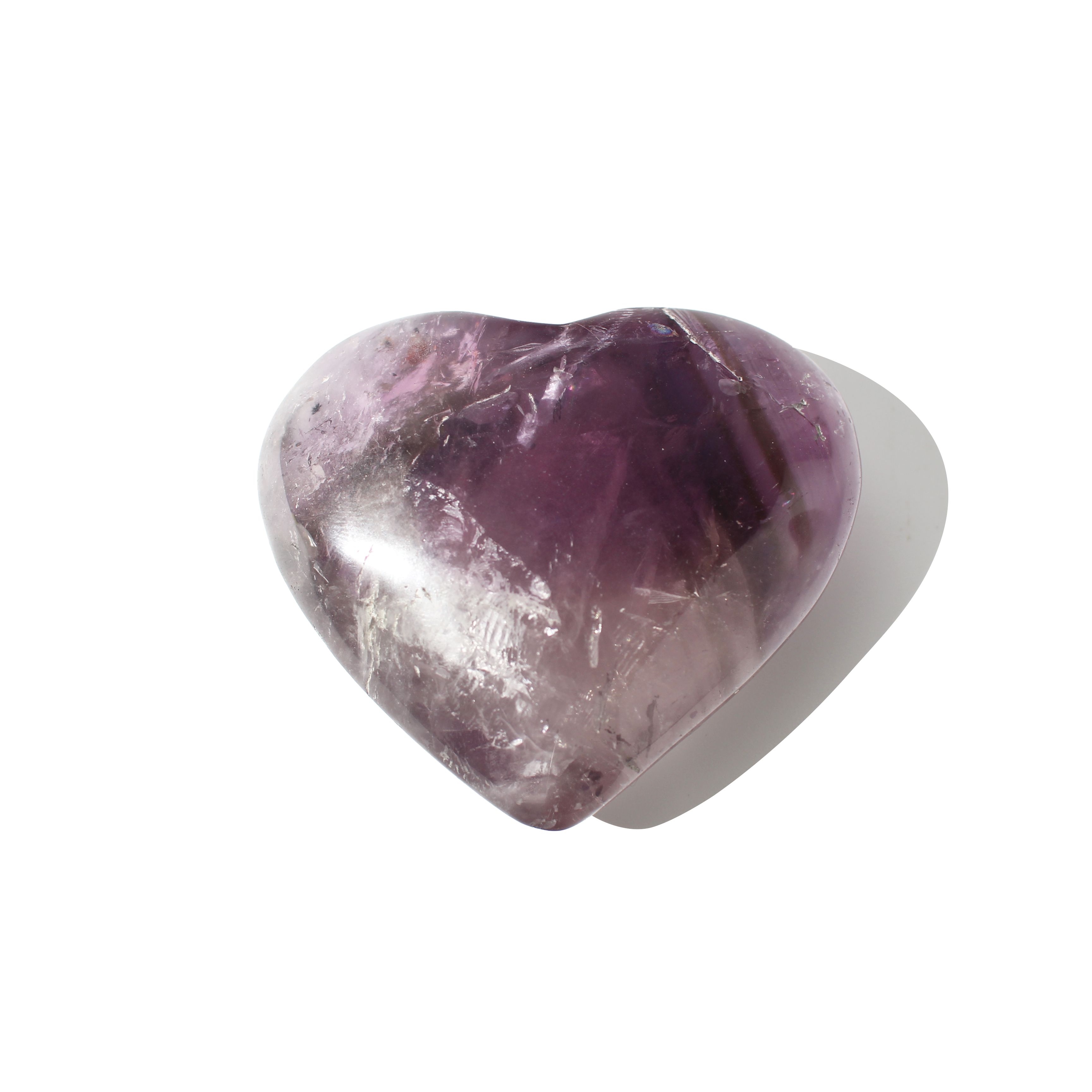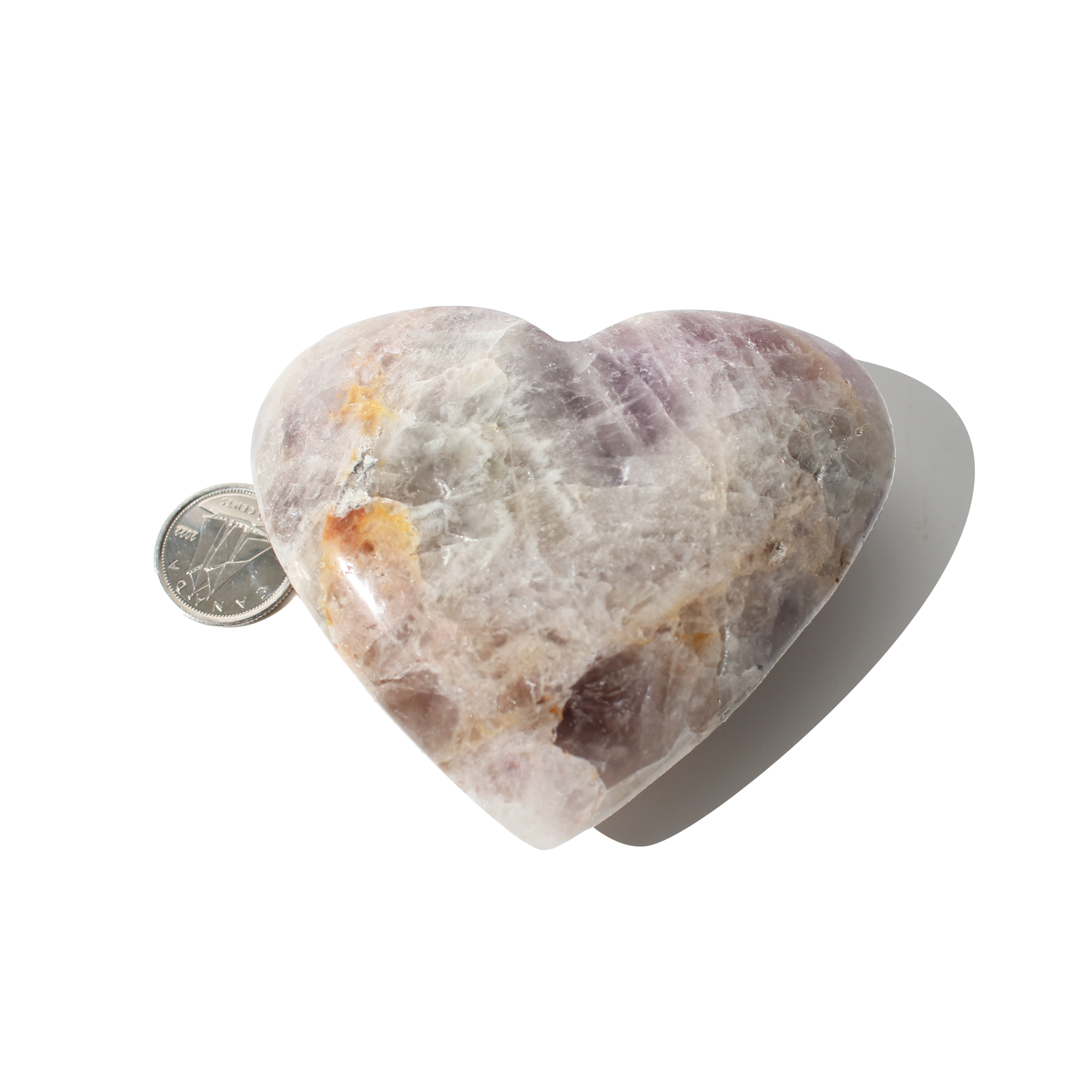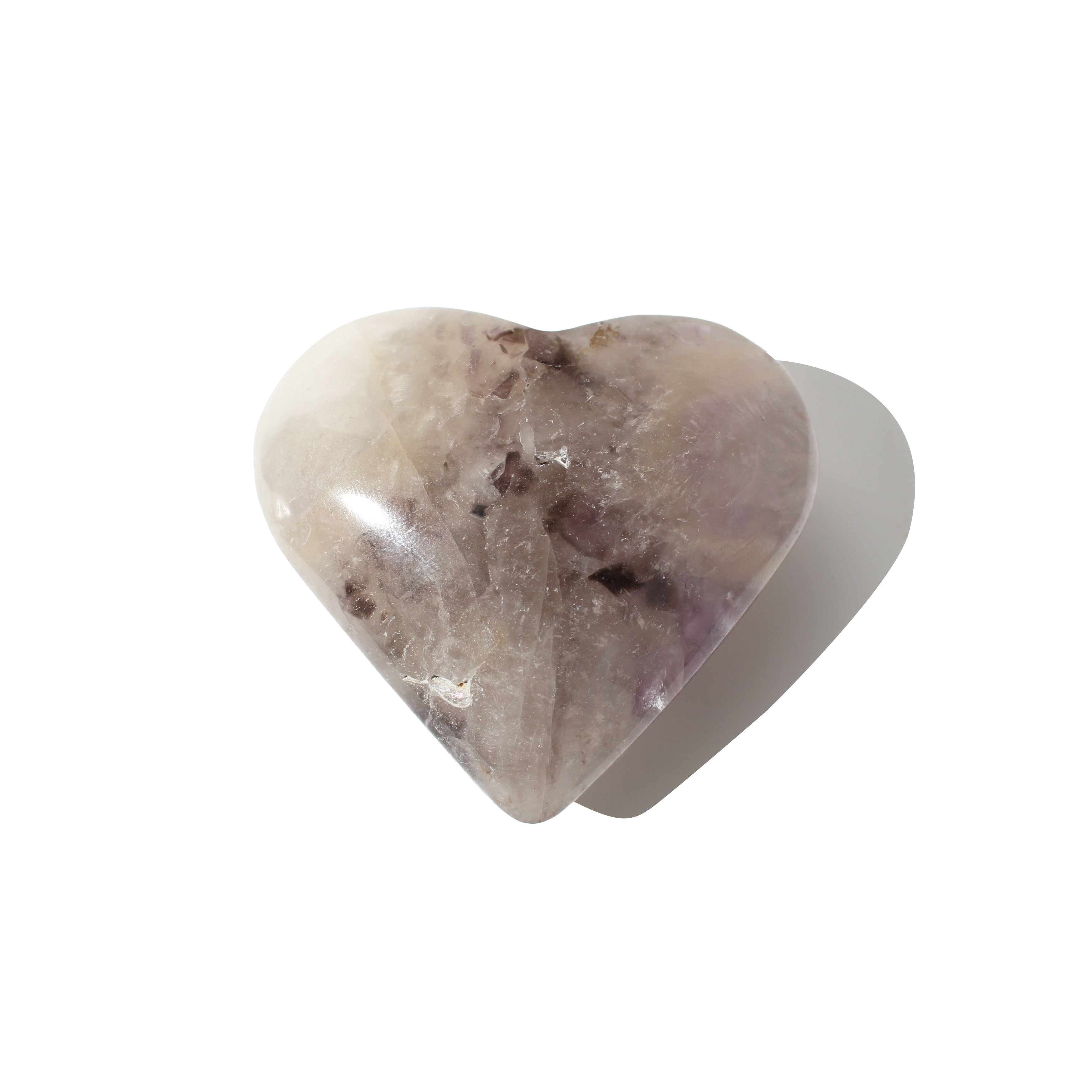 This 2" Amethyst and Smoky Quartz Heart #5 features a polished blend of violet and smoky grey tones, offering a visually rich and energetically balanced presence. Smooth, solid, and full of calming strength.