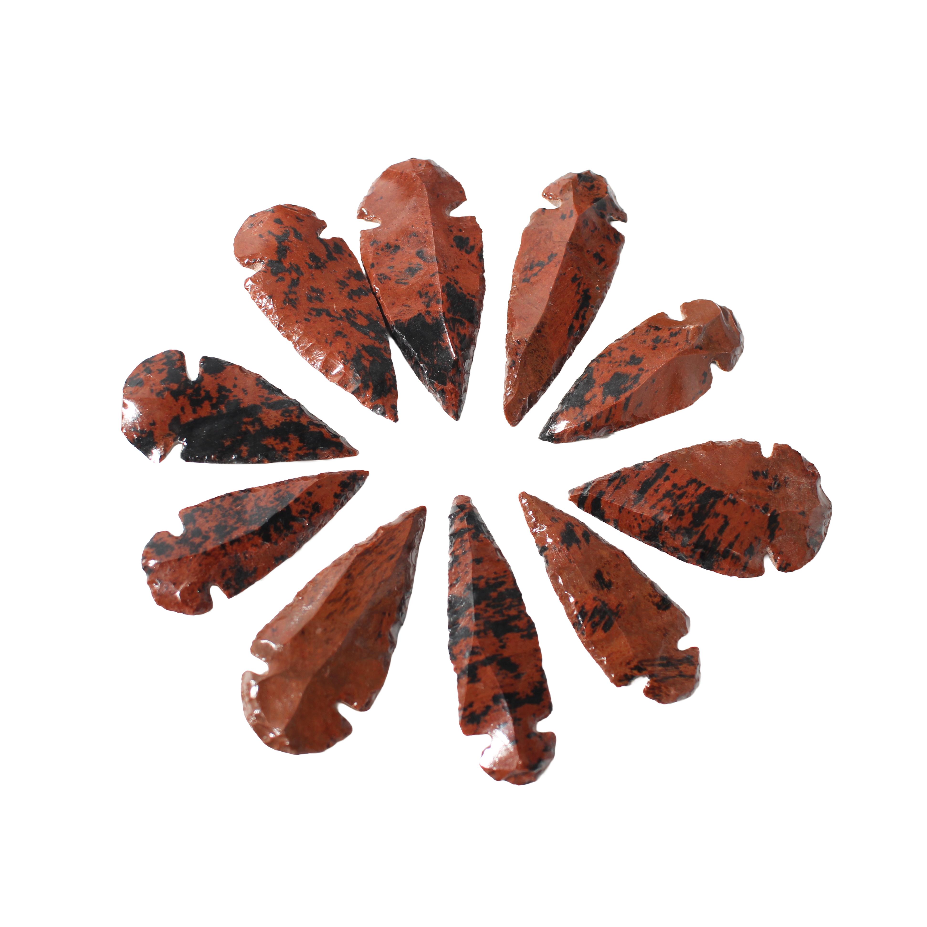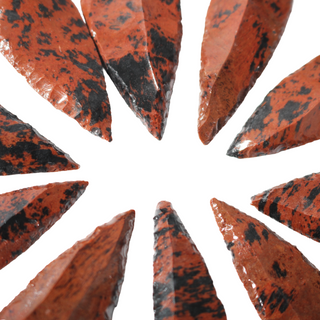 This 10-pack of Mahogany Obsidian Arrowheads features rich reddish-brown tones with deep black veining, each hand-chipped into a classic arrowhead shape. Bold, earthy, and protective, they blend ancient form with grounding energy.
