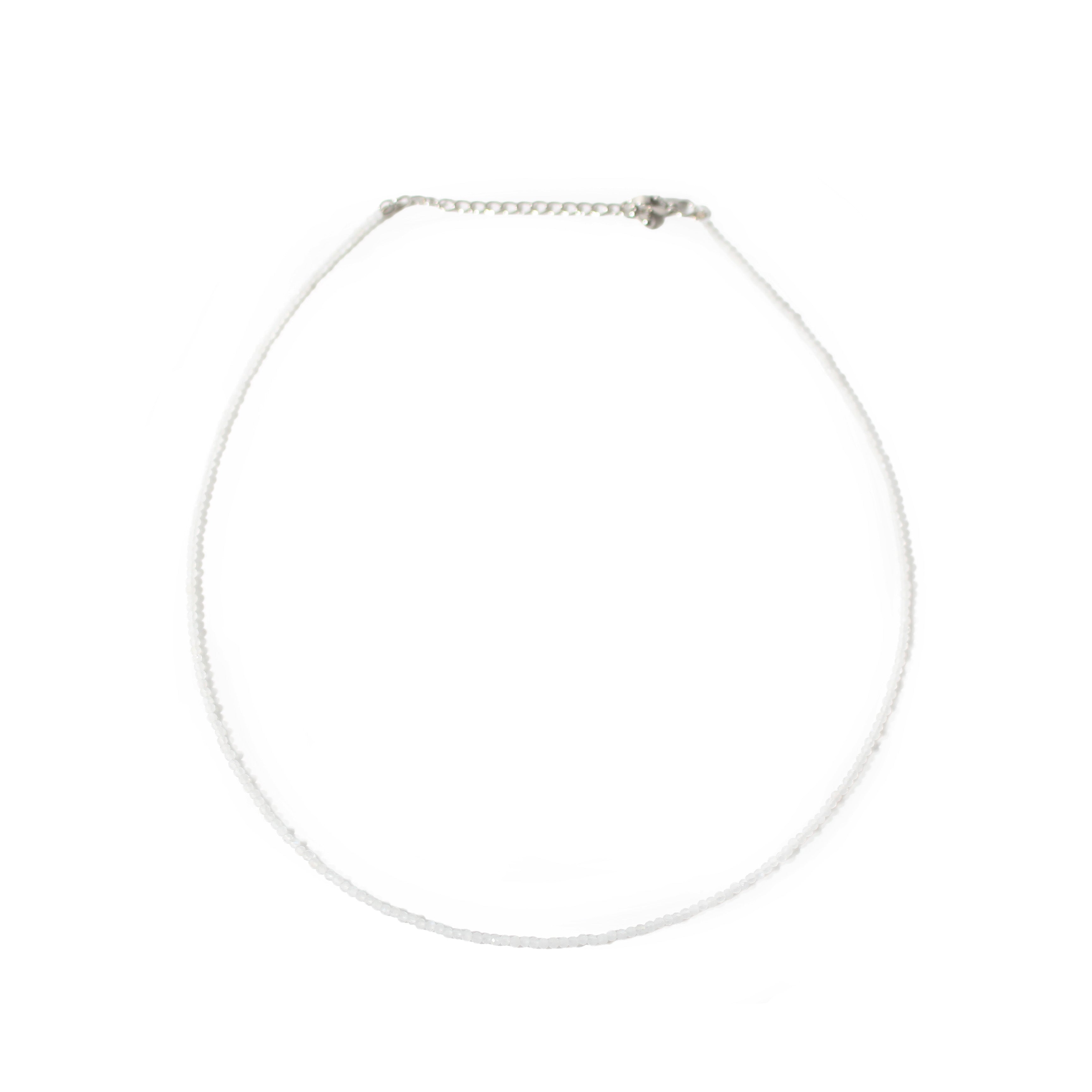 This Rainbow Moonstone Bead Necklace features dainty 2–3mm beads with soft flashes of blue and opal tones. Elegant and enchanting, it carries a luminous, feminine energy.