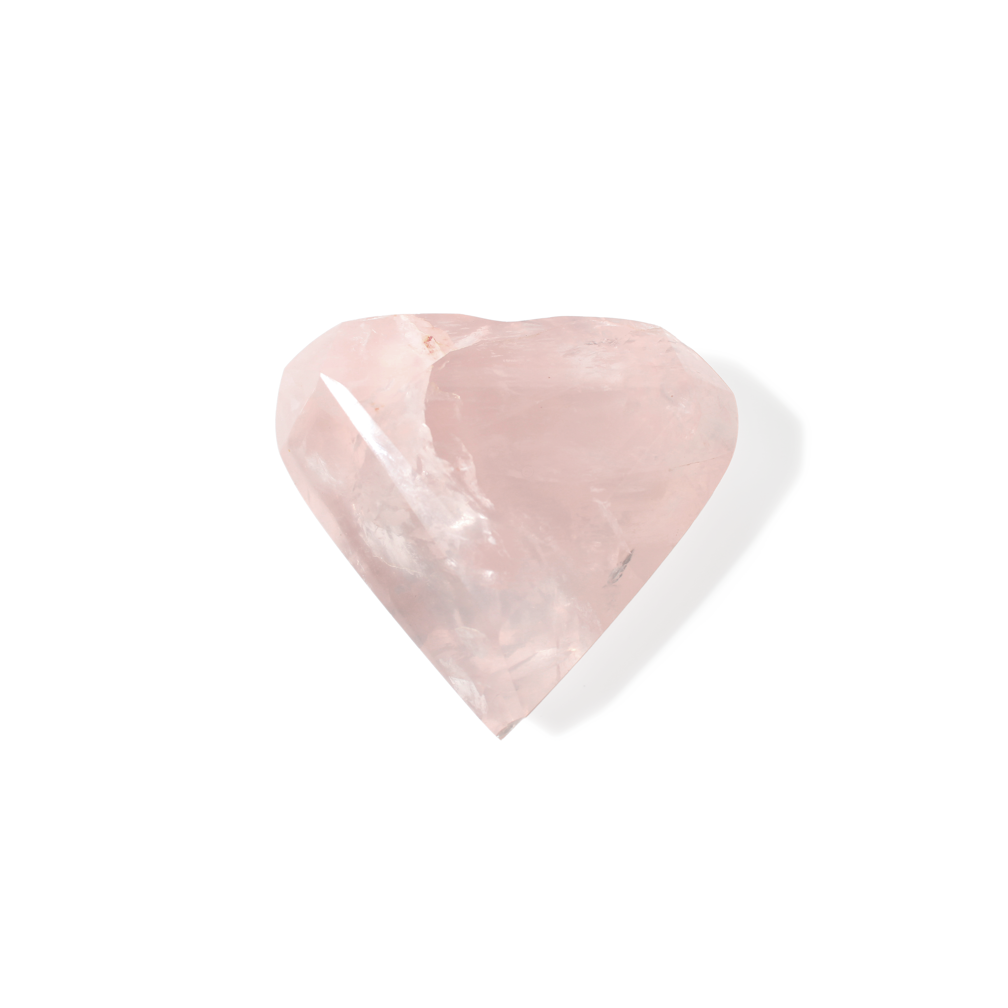 This 2" Rose Quartz A Faceted Heart #7 features soft pink hues and precise faceting that sparkles with gentle light. Polished to a luminous finish, it radiates love, beauty, and emotional calm.