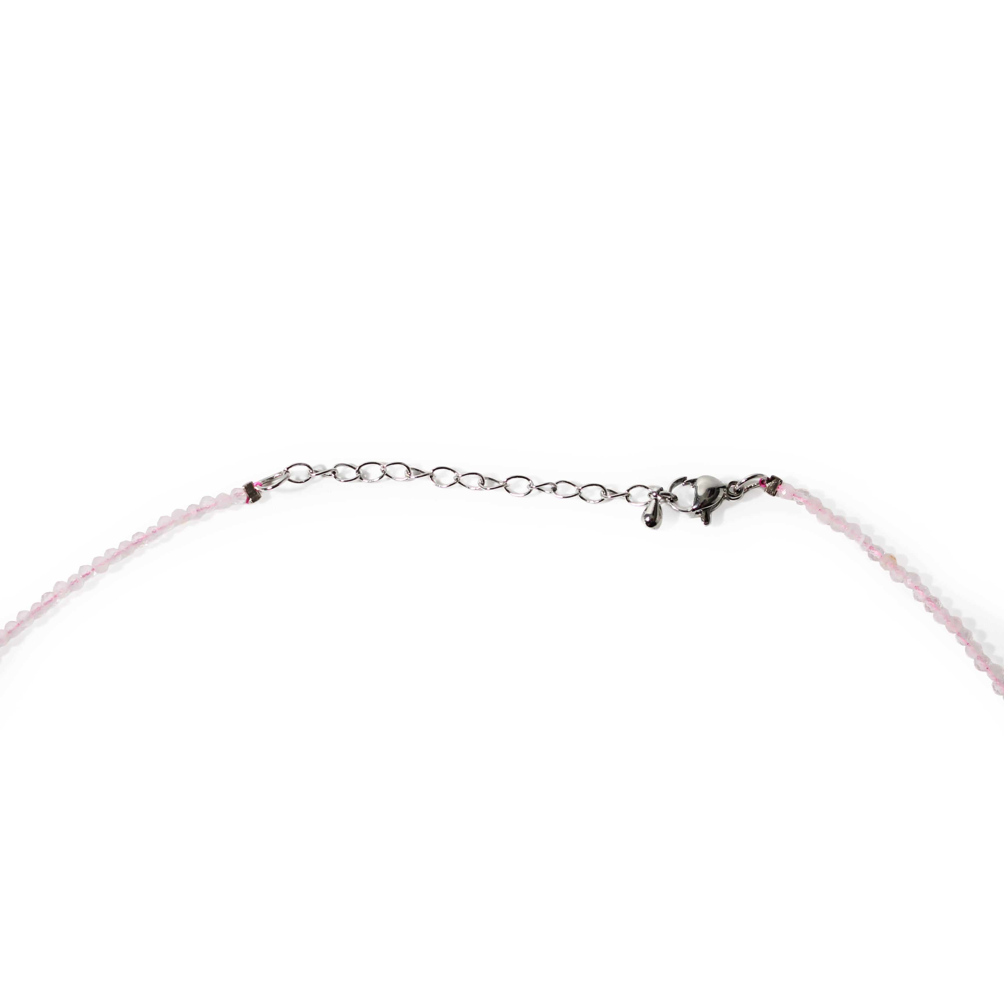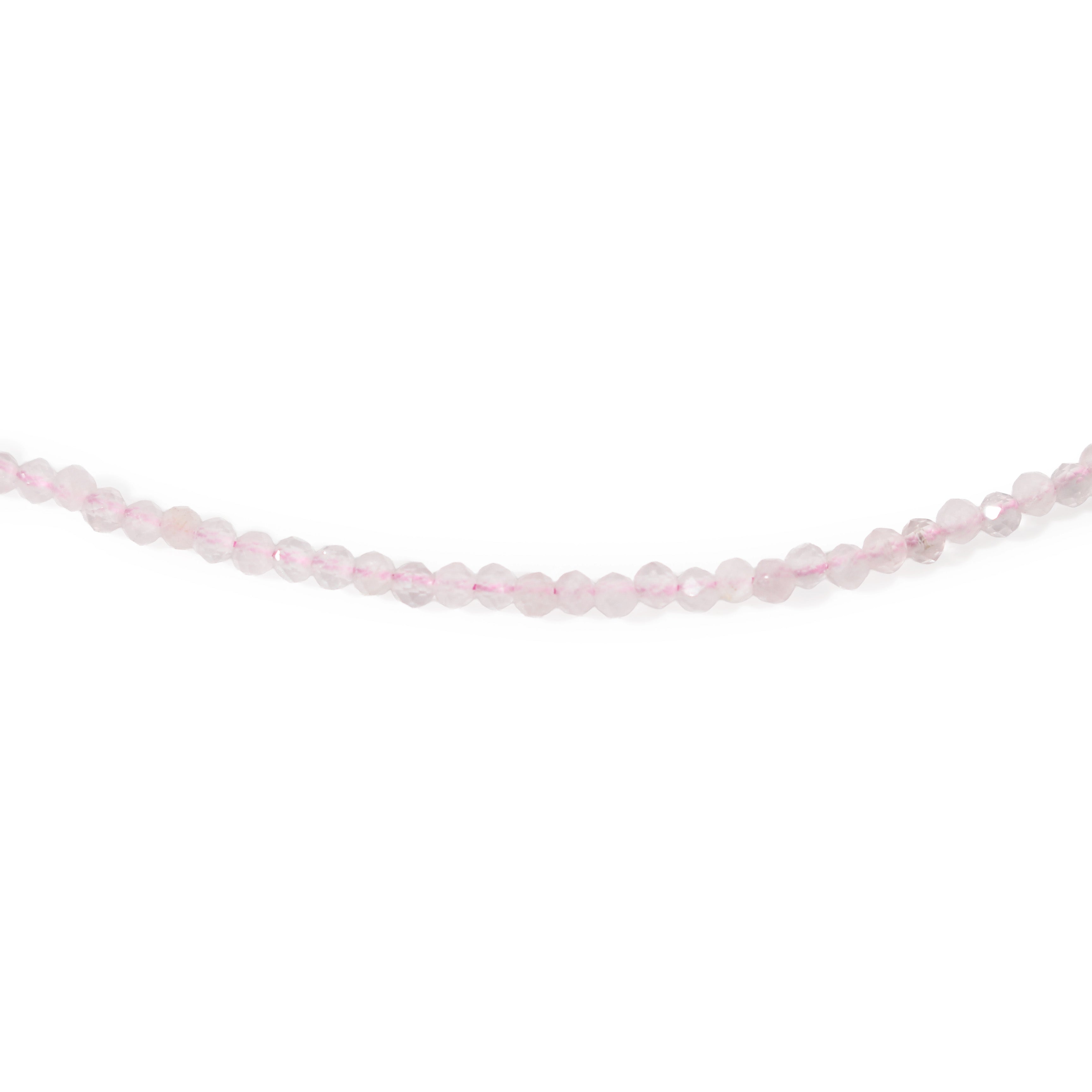 This Rose Quartz Bead Necklace features soft pink 2–3mm beads that radiate gentle, loving energy. Its delicate design makes it perfect for layering or wearing close to the heart.