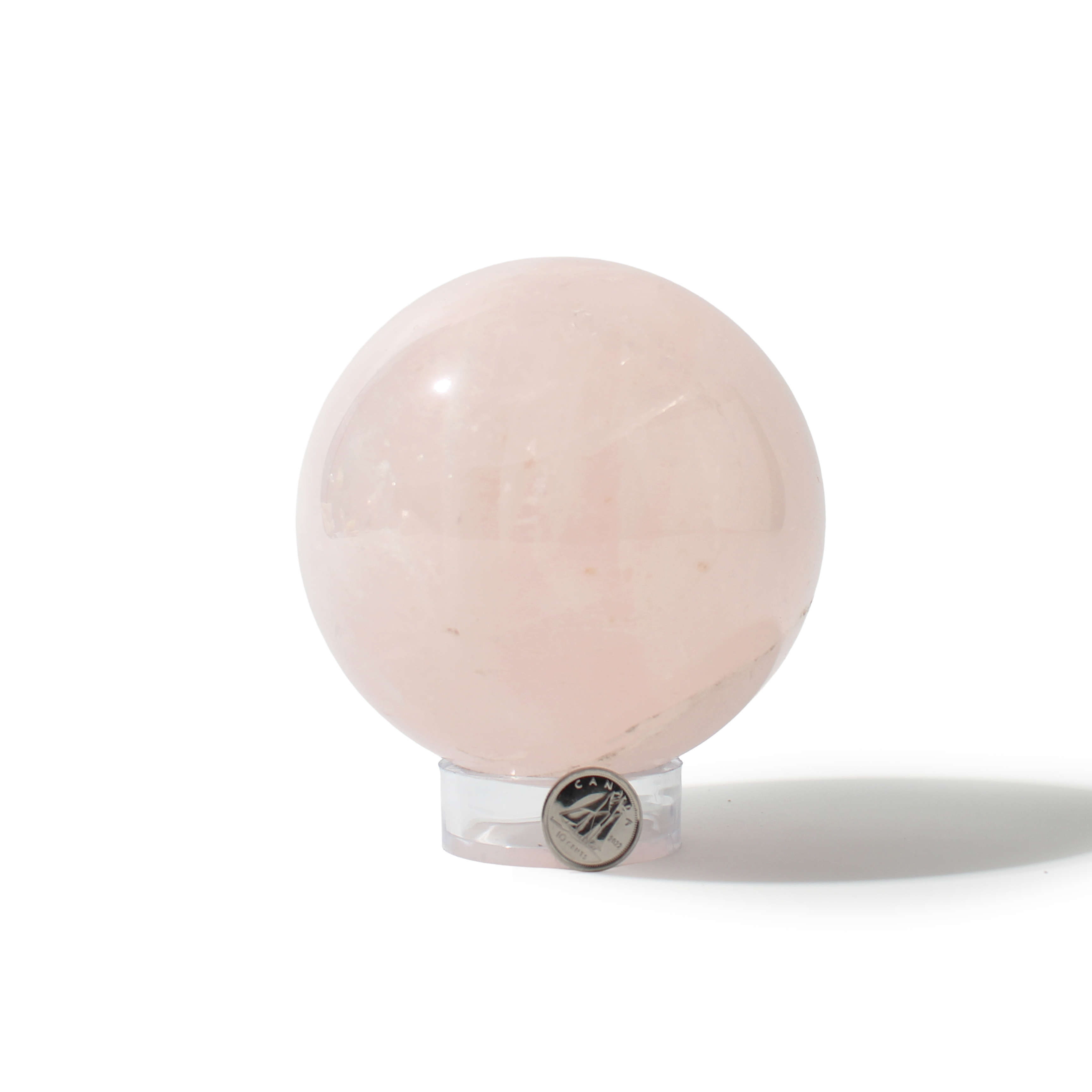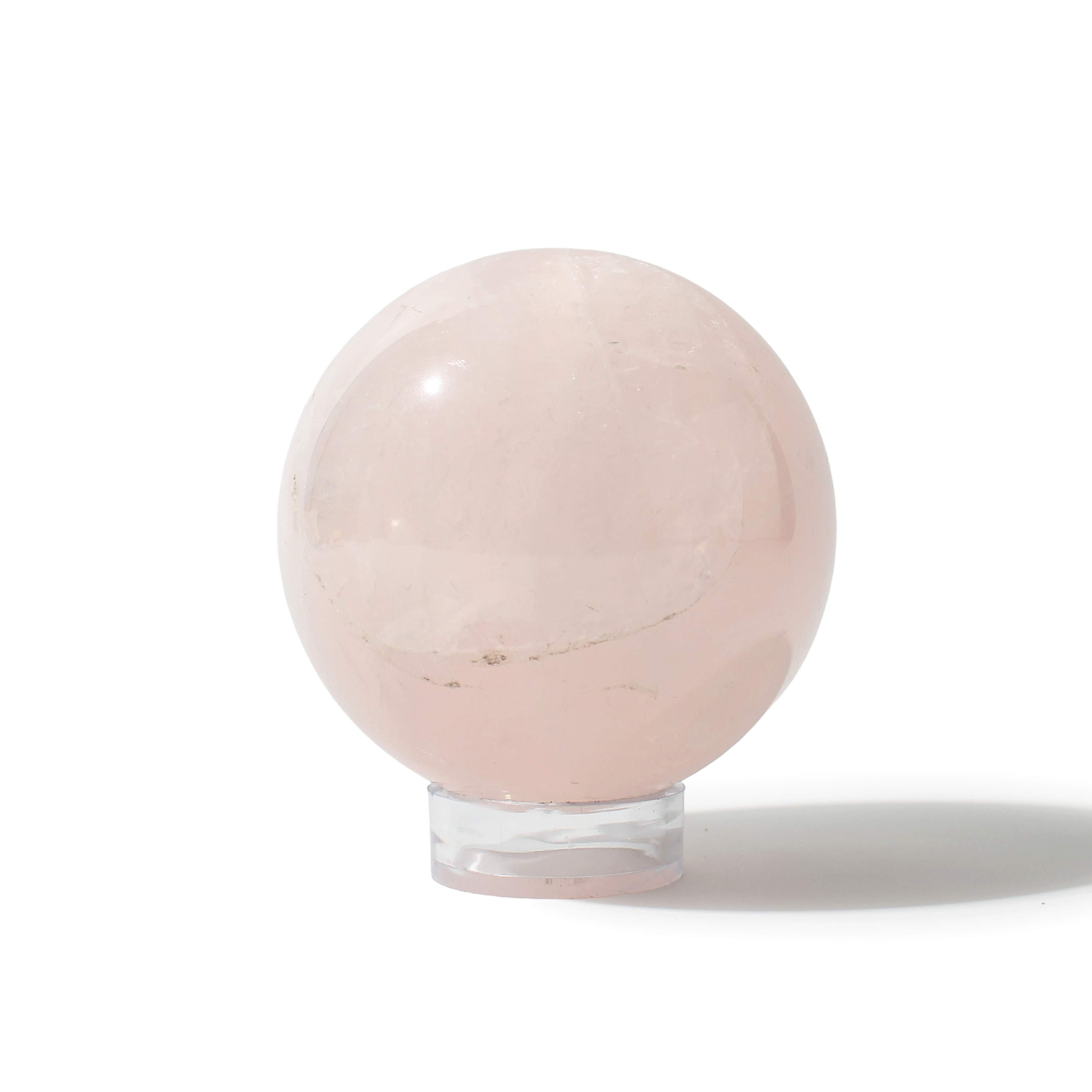 Rose Quartz Sphere Unique #61 - 4" across and features soft pink tones with a smooth, polished finish. Radiating gentle, loving energy in all directions, it’s ideal for emotional healing and heart-centered spaces.