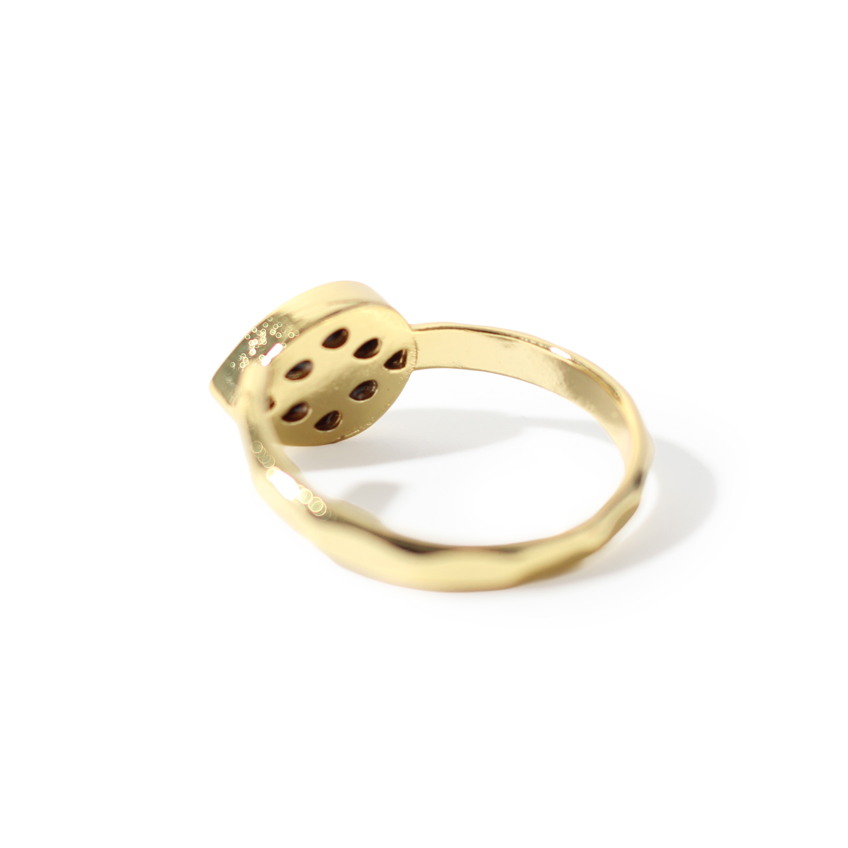 This Tiger Eye Faceted Drop Ring features a golden-brown teardrop stone with natural chatoyancy, faceted for extra brilliance and set on an adjustable band. Bold and grounding, it adds a confident edge to any look.